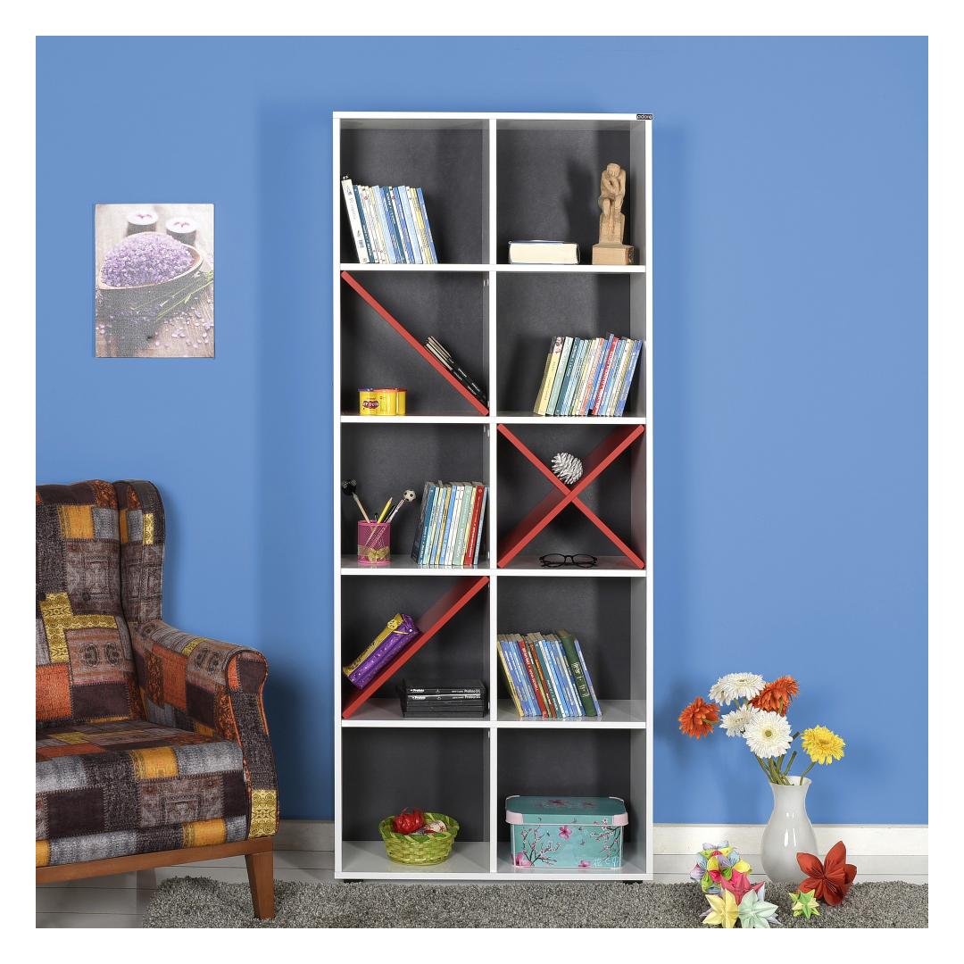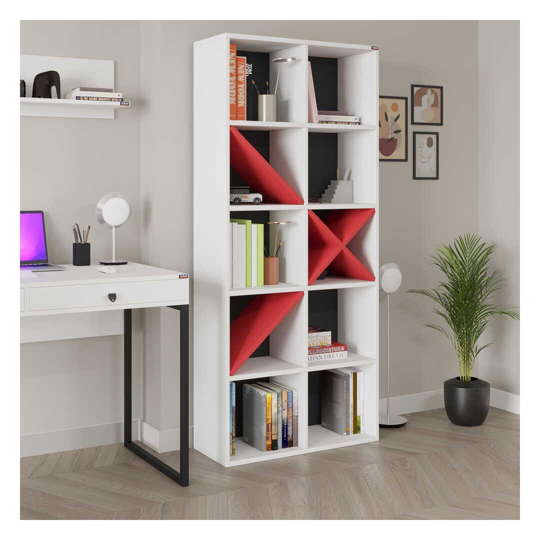Oma elegantse disaini ja moodsa valge ja punase värvikombinatsiooni abil tõstab see raamaturiiul koheselt mis tahes ruumi välimust. Kas soovite näidata oma lemmikraamatuid, fotosid või dekoratiivseid esemeid, sellel raamaturiiulil on palju riiuleid, et mahutada kõik teie asjad.