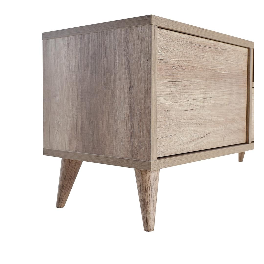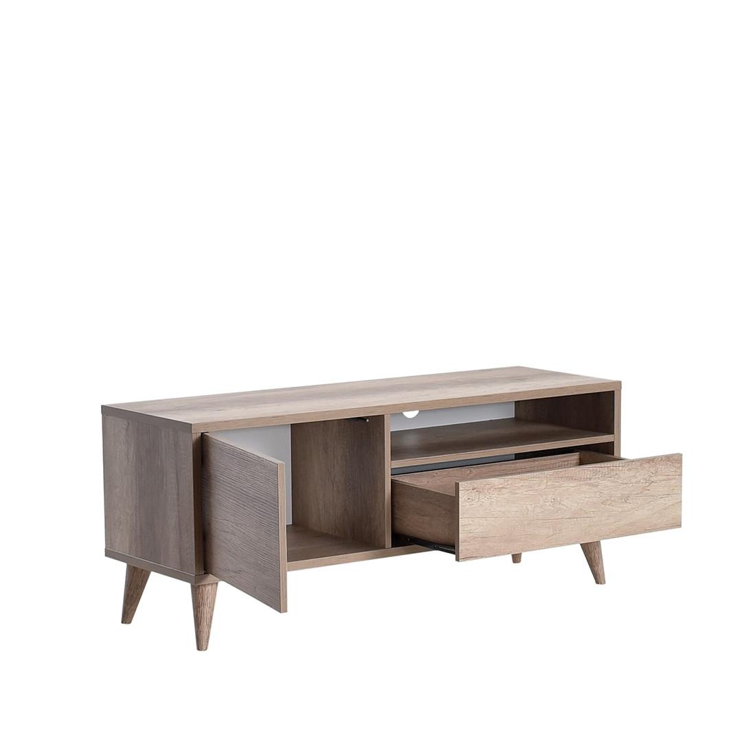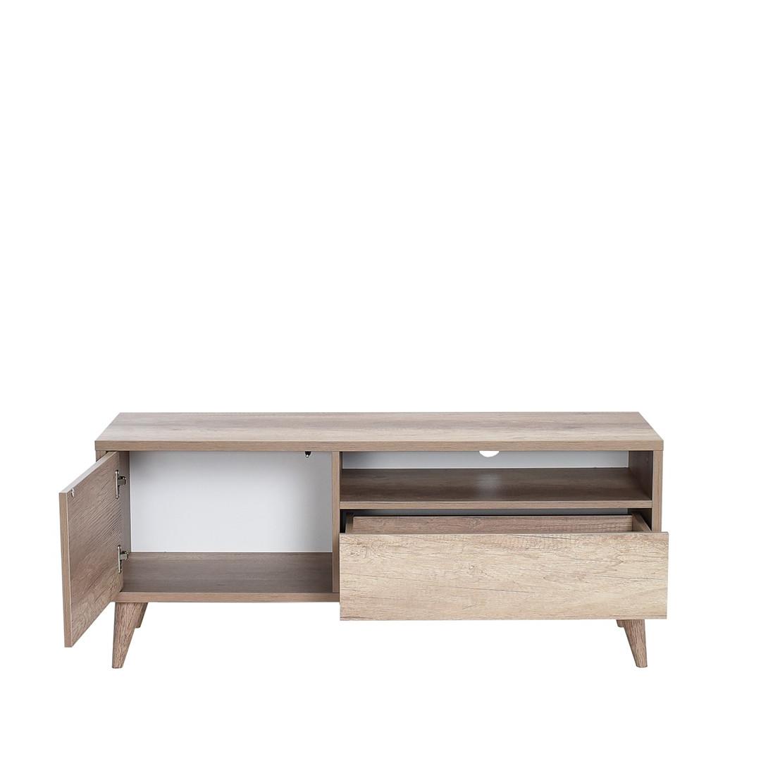 See 100% melamiiniga kaetud puitlaastplaadist valmistatud teleritugi ei ole mitte ainult stiilne, vaid ka vastupidav. Võite kindel olla, et see mööblitükk peab vastu, pakkudes teile aastatepikkust naudingut.