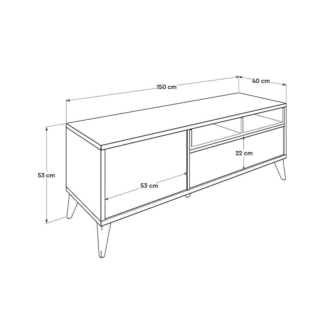 150 cm laiuse, 53 cm kõrguse ja 40 cm sügavusega telerialus pakub piisavalt ruumi teie televiisorile ja muudele meelelahutusvahenditele. Pähklipuidust värv lisab teie elutuppa sooja ja kutsuvat atmosfääri, muutes selle ideaalseks keskmeks pere filmiõhtutele või sõpradega koosviibimistele.