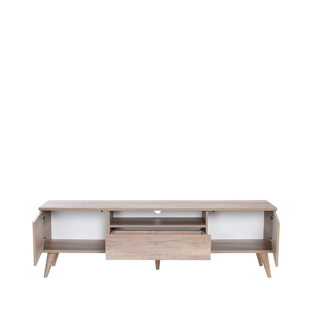 Mitme riiuliga pakub see telerialus rohkelt ruumi mängukonsoolide, dvd-mängijate ja muu korraliku hoiustamiseks. Elegantne hele pähklivärv lisab igasse ruumi elegantsust, samas kui 100% melamiiniga kaetud puitlaastplaat tagab vastupidavuse ja pikaealisuse.