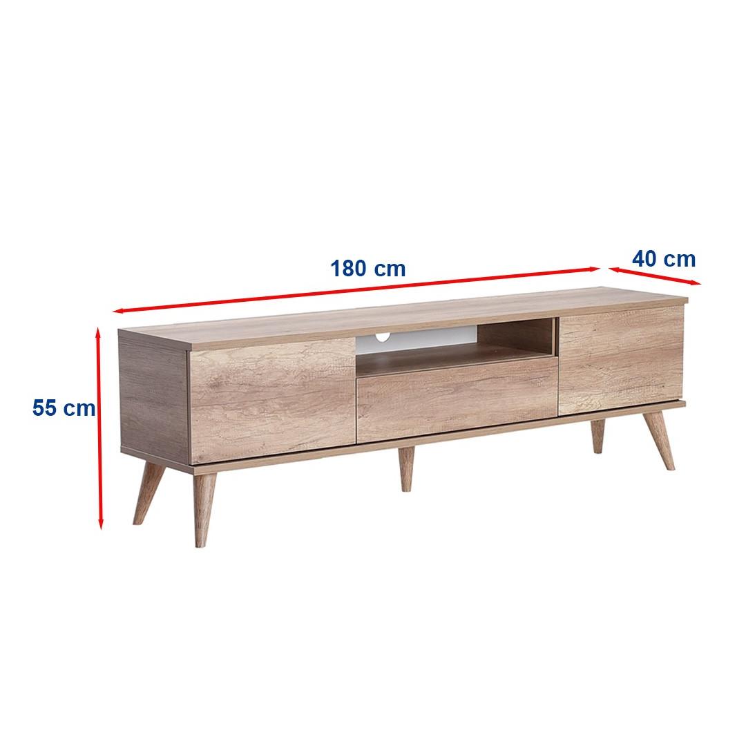 See 180 cm laiusega, 55 cm kõrgusega ja 40 cm sügavusega teleripult sobib ideaalselt enamikku elutubadesse. Lisaks saab seda hõlpsasti seinale kinnitada, et suurendada stabiilsust ja turvalisust.
