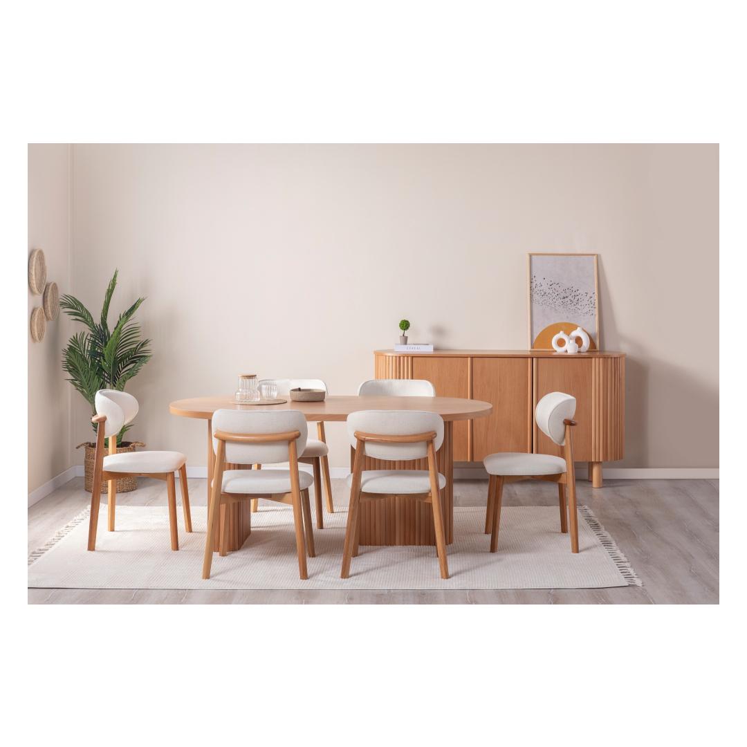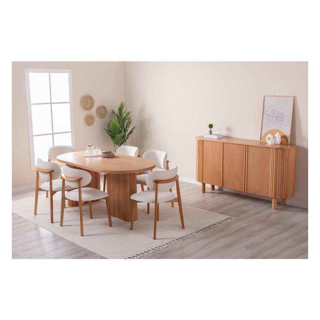 Kujutage ette, kuidas kogunete koos oma lähedastega selle suurepärase laua ümber, jagades naeru ja luues mälestusi, mis kestavad terve elu. Selle ruumikas disain pakub mugavalt istekohta 6 inimesele, mistõttu sobib see ideaalselt intiimseteks õhtusöökideks või elavateks koosviibimisteks sõpradega.