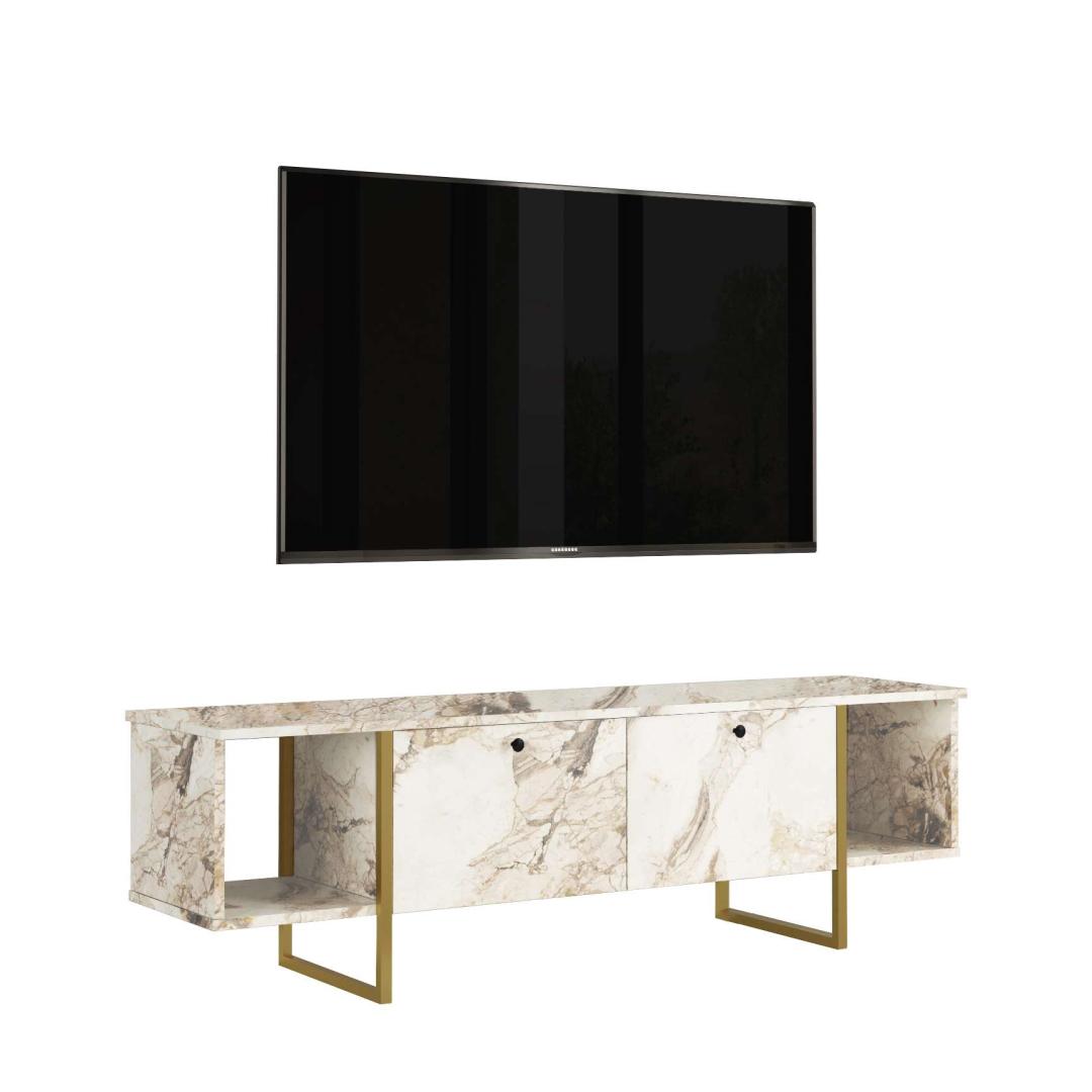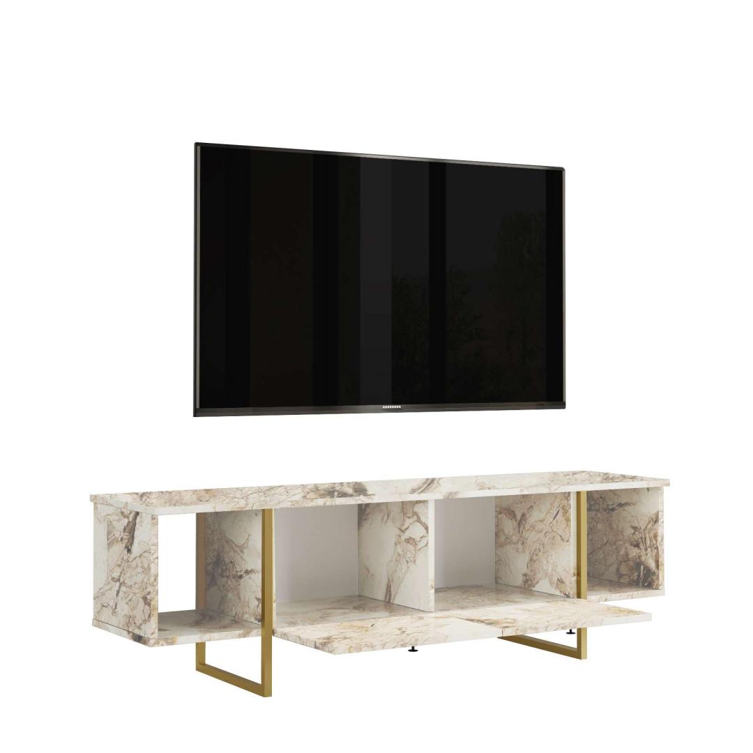 See telerialus, millel on silmatorkava valge ja kuldse värvi kombinatsiooniga metalljalad, õhkab külluslikkust ja luksust. Kontrastsed värvid loovad paeluvat visuaalset mõju, muutes selle tõeliseks keskpunktiks igas toas. Valge ja kuldne värvikombinatsioon täiendab vaevata mis tahes olemasolevat sisekujundust, lisades teie ruumile glamuuri.