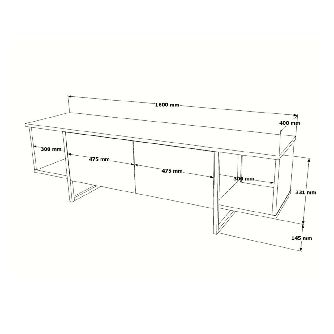 Teleri statiiv on 160 cm lai, pakkudes piisavalt ruumi teie televiisorile ja teistele meediaseadmetele. Selle kõrgus 47,6 cm ja sügavus 40 cm pakuvad täiuslikke mõõtmeid tasakaalustatud ja visuaalselt atraktiivse paigutuse loomiseks. Jalgade kõrgus 14,5 cm lisab elegantsi, tõstes teie elutoa üldist väljanägemist.