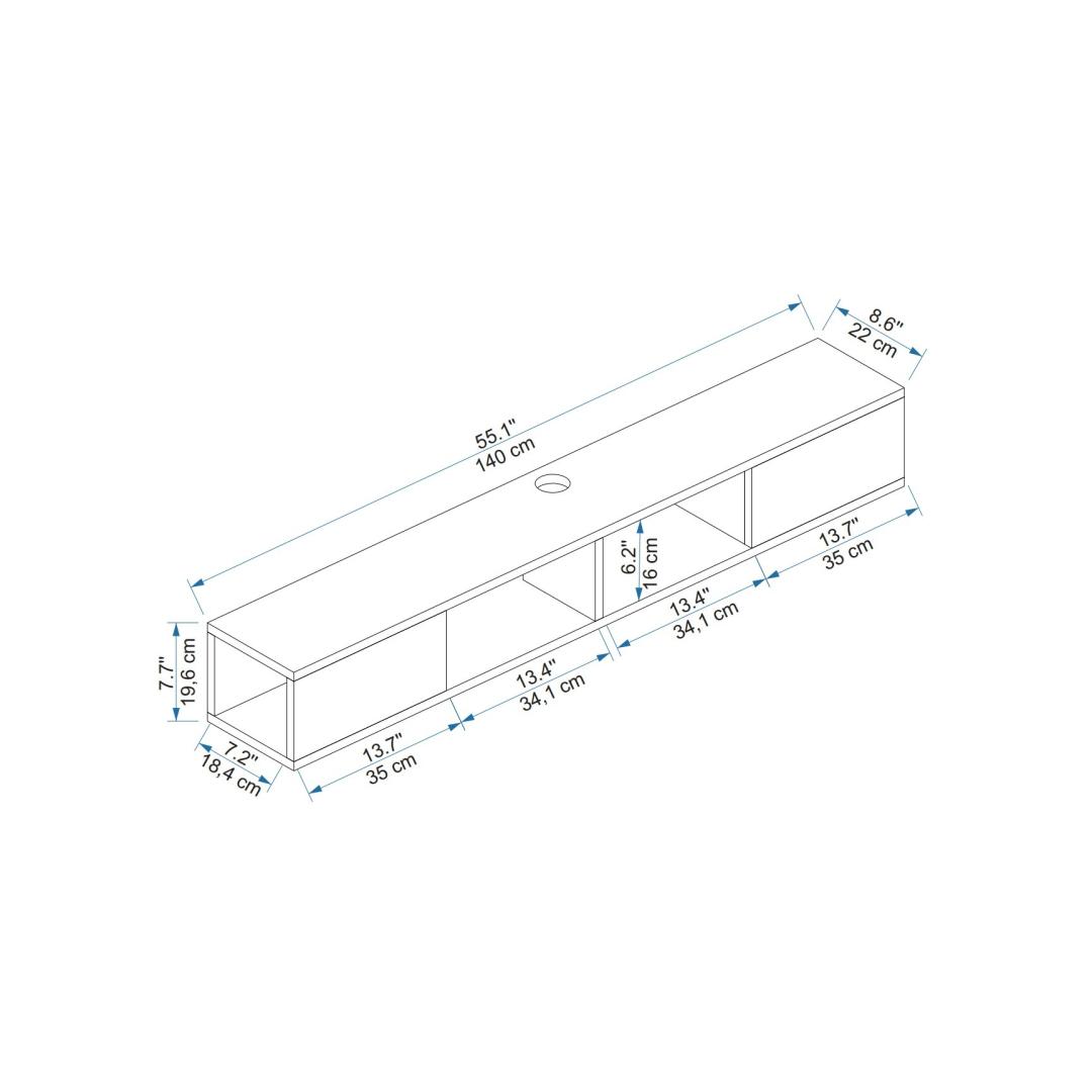 Seda teleripulka saab stabiilsuse ja ohutuse lisamiseks kinnitada seinale, mistõttu sobib see ka laste või lemmikloomadega majapidamistesse. Selle mõõtmed on 140 cm laius, 19. 6 cm kõrguse ja 22 cm sügavuse tõttu sobib see ideaalselt eri suurusega telerite jaoks.