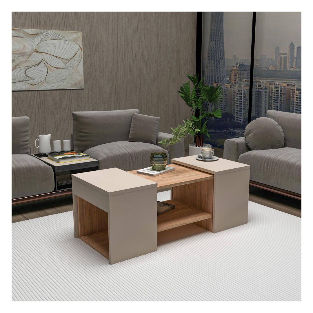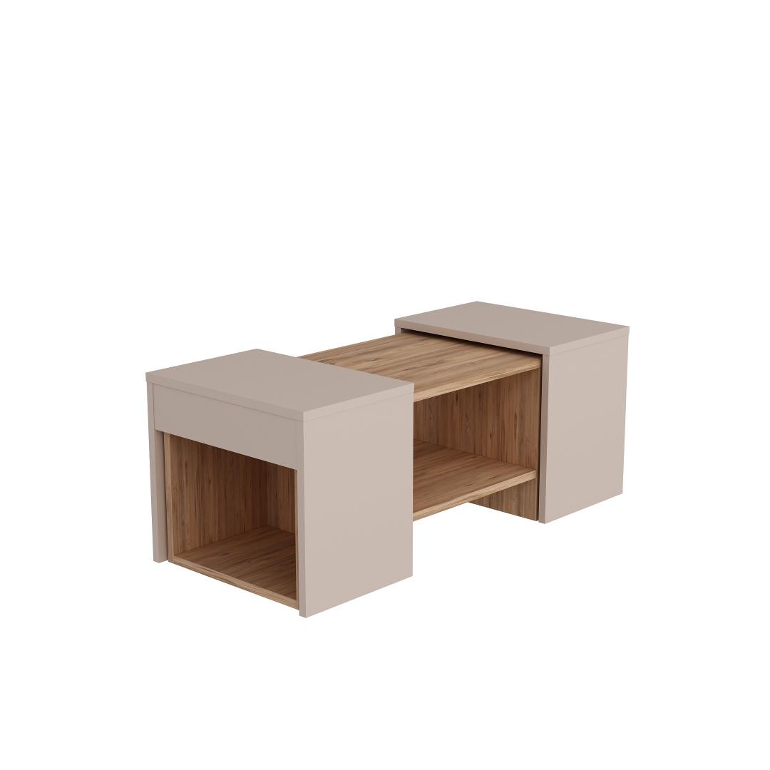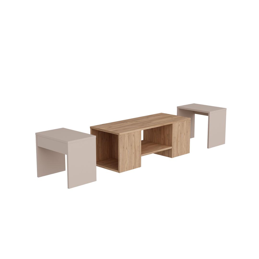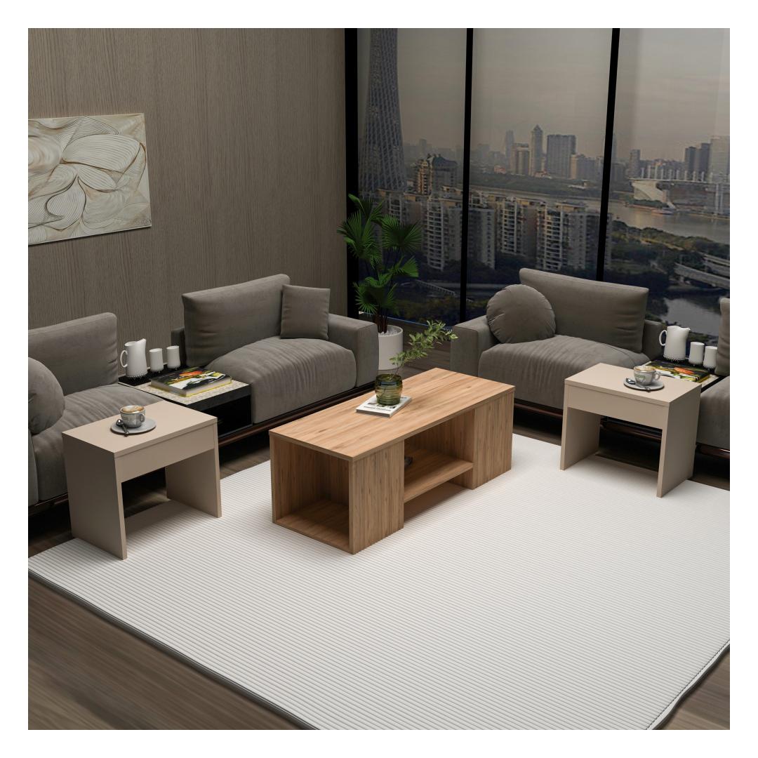 Atlandi männi ja beeži värvikombinatsioon lisab igasse ruumi elegantsust, samas kui kohvilaud ja kaks küljelaua elegantset ja moodsat disaini, mis koheselt teie eluruumi uuendavad.
