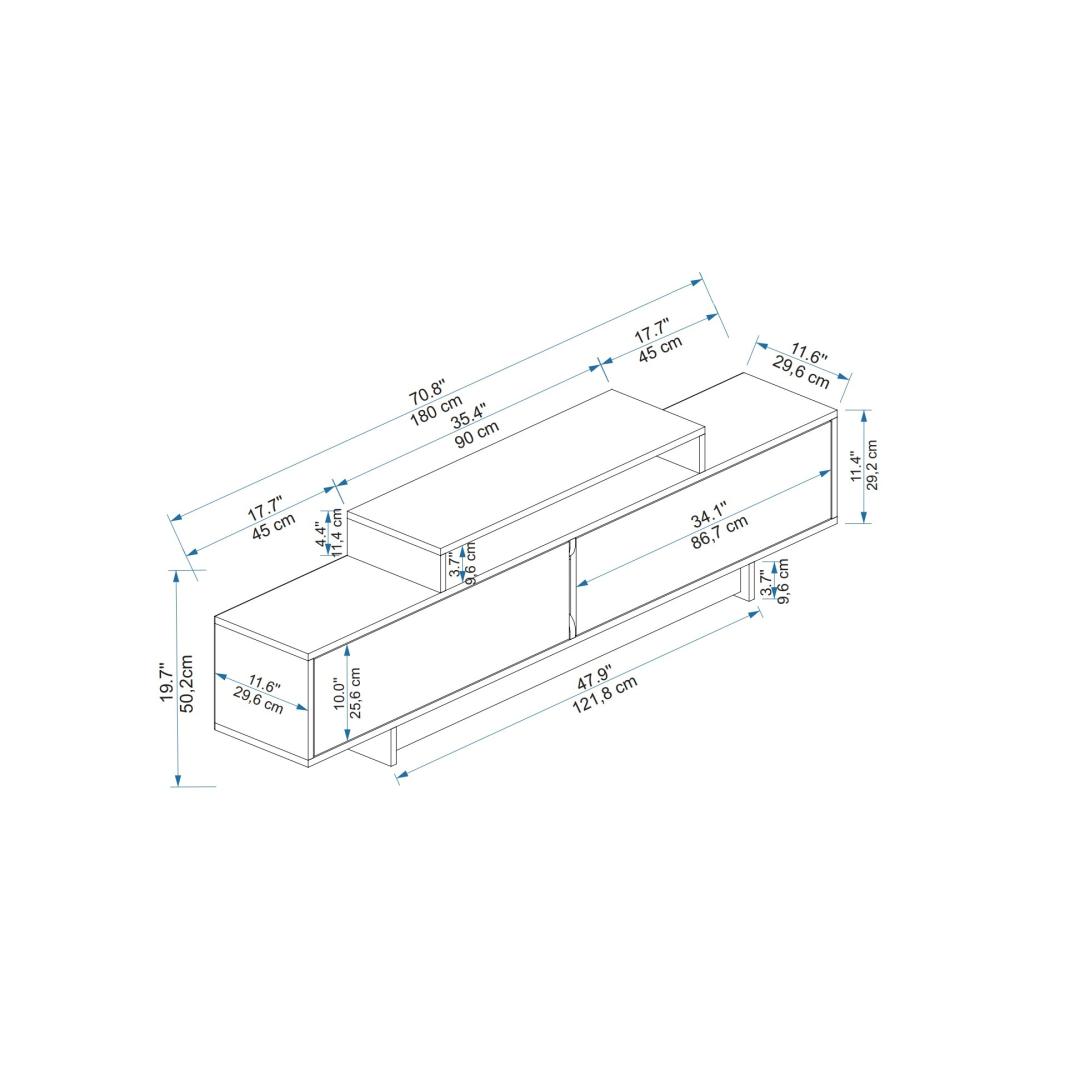 Ütle hüvasti segadusele ja tere täiendavale hoiuruumile meie televiisoripuldi abil. Laius 180 cm, kõrgus 50. 2 cm ja sügavus 29. 6 cm, pakub see statiiv piisavalt ruumi kõigile teie meediatarvikutele. Hoidke oma dvd-d, kaugjuhtimispuldid ja mängukonsoolid korrastatult ja käeulatuses, et nautida sujuvat vaatamist.