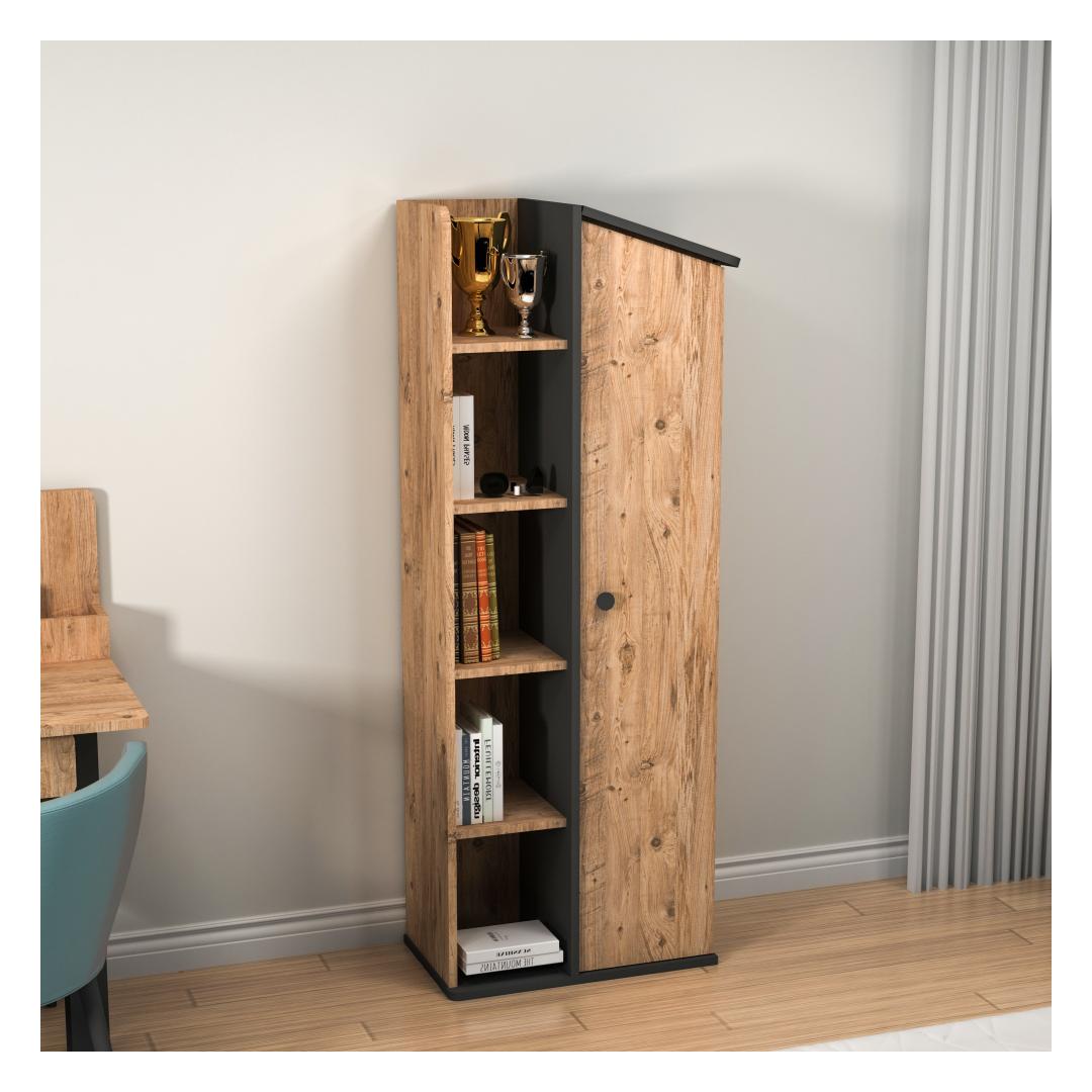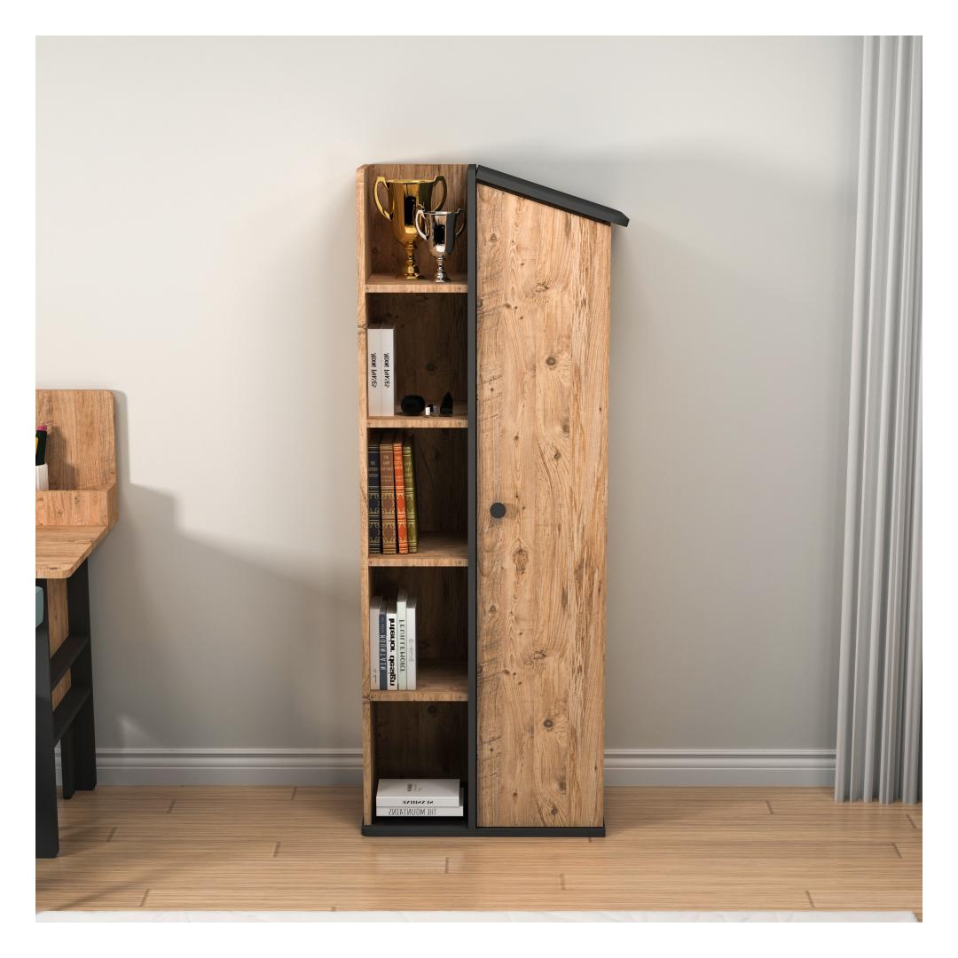 See ülima täpsusega valmistatud raamaturiiul on valmistatud 100% melamiiniga kaetud puitlaastplaadist, mis tagab vastupidavuse ja pikaealisuse. Atlandi männi ja antratsiidi värvide kombinatsioon lisab teie ruumile elegantsi, sobitudes vaevata mis tahes interjööri stiiliga. On aeg esitleda oma lemmikraamatuid, dekoratiivseid esemeid ja armastatud mälestusi stiilselt!