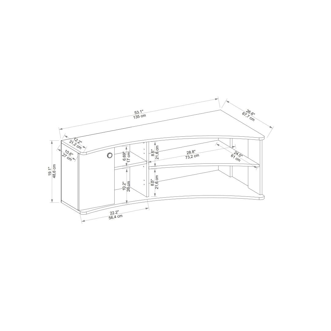 Valmistatud 100% melamiinkattega puitlaastplaadist, on see telerialus loodud kestma. 18 mm paksus tagab stabiilsuse ja vastupidavuse, samas kui täpsed mõõtmed: Kõrgus: 48,6 cm, Laius: 135 cm ja Sügavus: 67,7 cm pakuvad piisavalt ruumi sinu teleri ja teiste meedia seadmete jaoks. Atlandi mändi ja antratsiidi värvid lisavad igasse ruumi rafineerituse, muutes selle mitmekülgseks tükiks, mis sobib igasuguste sisustustüüpidega.