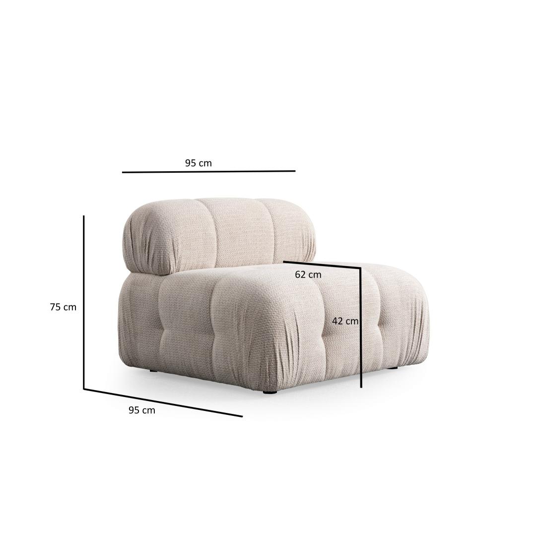 Valmistatud pöögipuu ja puitlaastplaadi kombinatsioonist, ei ole see diivan mitte ainult ilus, vaid ka vastupidav. Mustad plastmassist jalad tagavad stabiilsuse ja stiilsuse, samas kui üldmõõtmed 95 cm x 95 cm x 75 cm muudavad diivani ideaalselt sobivaks igasse ruumi.