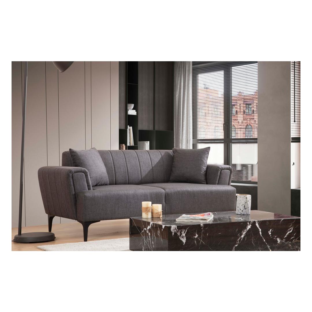 Meie 2-istmeline diivan on elegantse ja rafineeritud disainiga, mis suurendab vaevata iga ruumi esteetilist atraktiivsust. Tumehall värvus lisab modernsust ja mitmekülgsust, muutes selle ideaalseks täienduseks igale interjööristiilile.