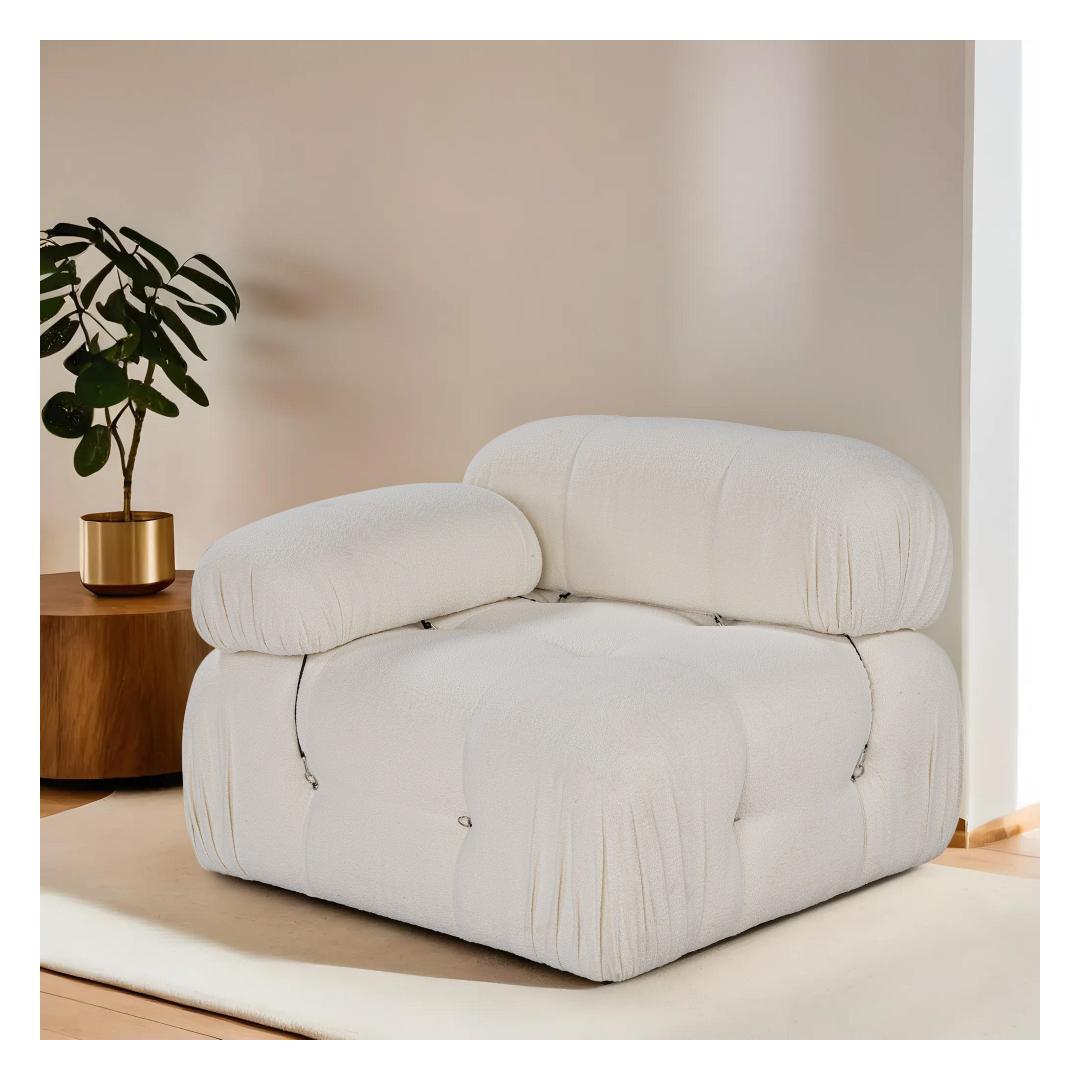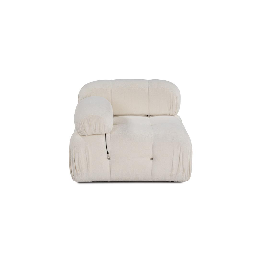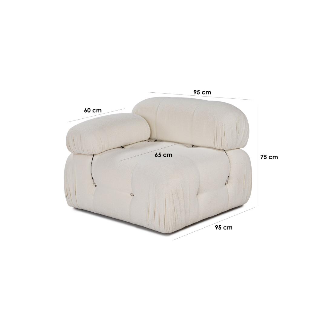 Selle diivani elegantse valge värvi ja mattmustade plastmassist jalgadega diivanist õhkub rafineeritust ja modernsust. Fikseeritud istmepadi ja kuivpuhastatav kangas muudavad hoolduse lihtsaks, tagades, et teie diivan näeb aastaid põlised välja. Modulaarne disain võimaldab kohandada teiste üksustega, et luua oma ideaalne istumiskorraldus.