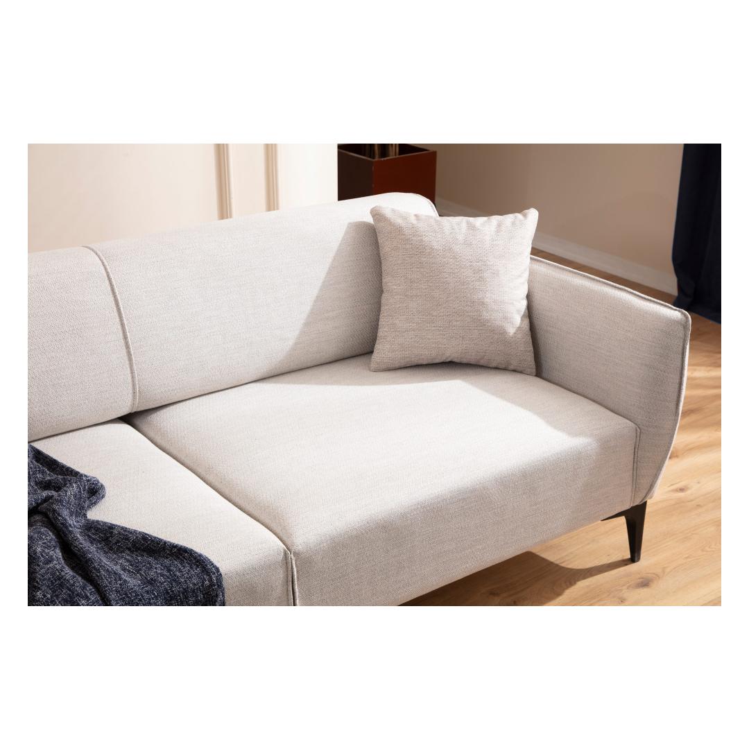 See diivan on valmistatud tugevast pöögipuidust ja puitlaastplaadist raamiga, mis tagab pikaajalise vastupidavuse ja stabiilsuse. 100% polüesterkangas pakub pehmet ja luksuslikku tunnet, tagades maksimaalse mugavuse teile ja teie lähedastele.