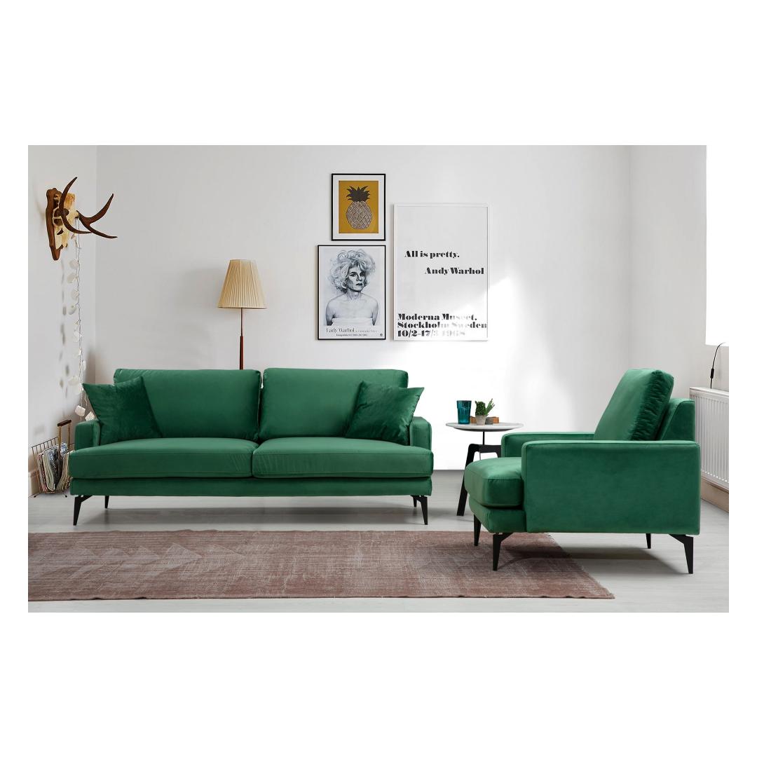 See diivan on valmistatud tugevast pöögipuidust ja puitlaastplaadist raamiga, mis on ehitatud kestma. Elegantne roheline värvus lisab igasse ruumi elegantsust, muutes selle teie kodu ideaalseks keskpunktiks. Mattmustad metalljalad ei paku mitte ainult stabiilsust, vaid lisavad kogu disainile ka industriaalse hõngu.