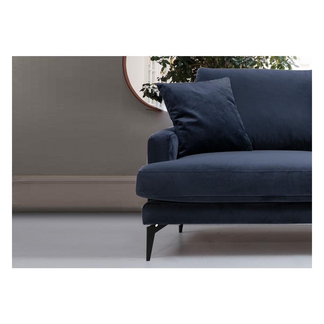 Massiivsest pöögipuidust ja puitlaastplaadist raamiga valmistatud diivan on vastupidav ja elegantne. 100% polüesterkangas lisab luksuslikkust, samas kui mereväe sinine värvus loob rahustava atmosfääri, mis sobib igale sisustusele. Mati mustad metalljalad lisavad industriaalseid jooni, muutes selle diivani igas ruumis väljapaistvaks.