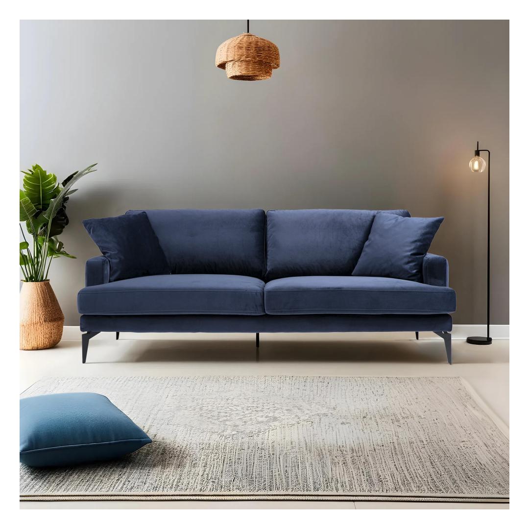 Tutvustame teile mugavuse ja stiili kehastust - meie tumesinist 3-kohalist diivanit. See uimastav tükk on loodud selleks, et muuta teie elutuba lõõgastumise ja rafineerituse paradiisiks.
