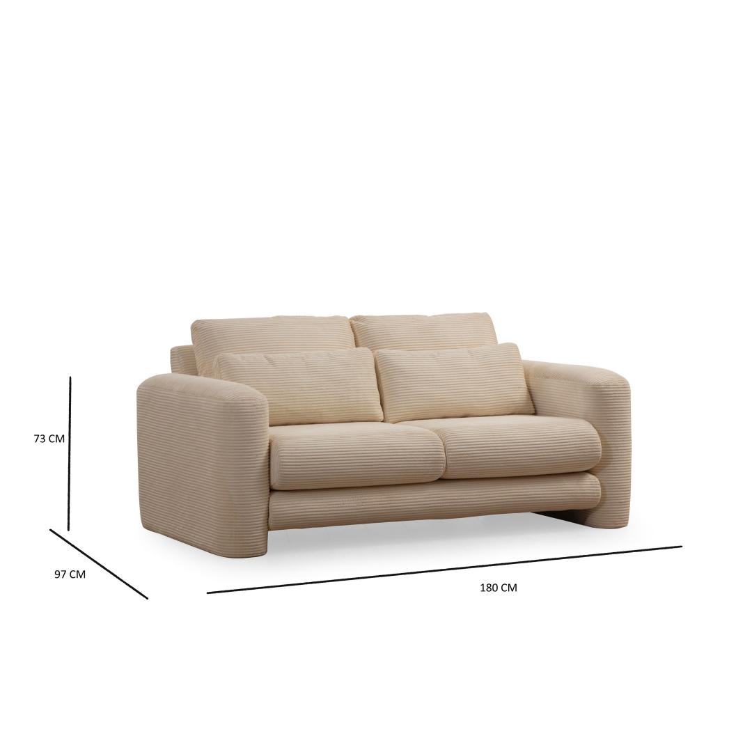 See diivan on valmistatud pöögipuidust ja puitlaastplaadist raamiga, mis õhkab väljapeetust ja elegantsust. Ümmargused plastmassist jalad lisavad moodsat puudutust, samas kui beež värv täiendab mis tahes sisekujundust. Kompaktsete mõõtmete (pikkus 180 cm, laius 97 cm ja kõrgus 73 cm) tõttu sobib diivan ideaalselt väiksematesse ruumidesse, ilma et stiili osas kompromisse tehtaks.