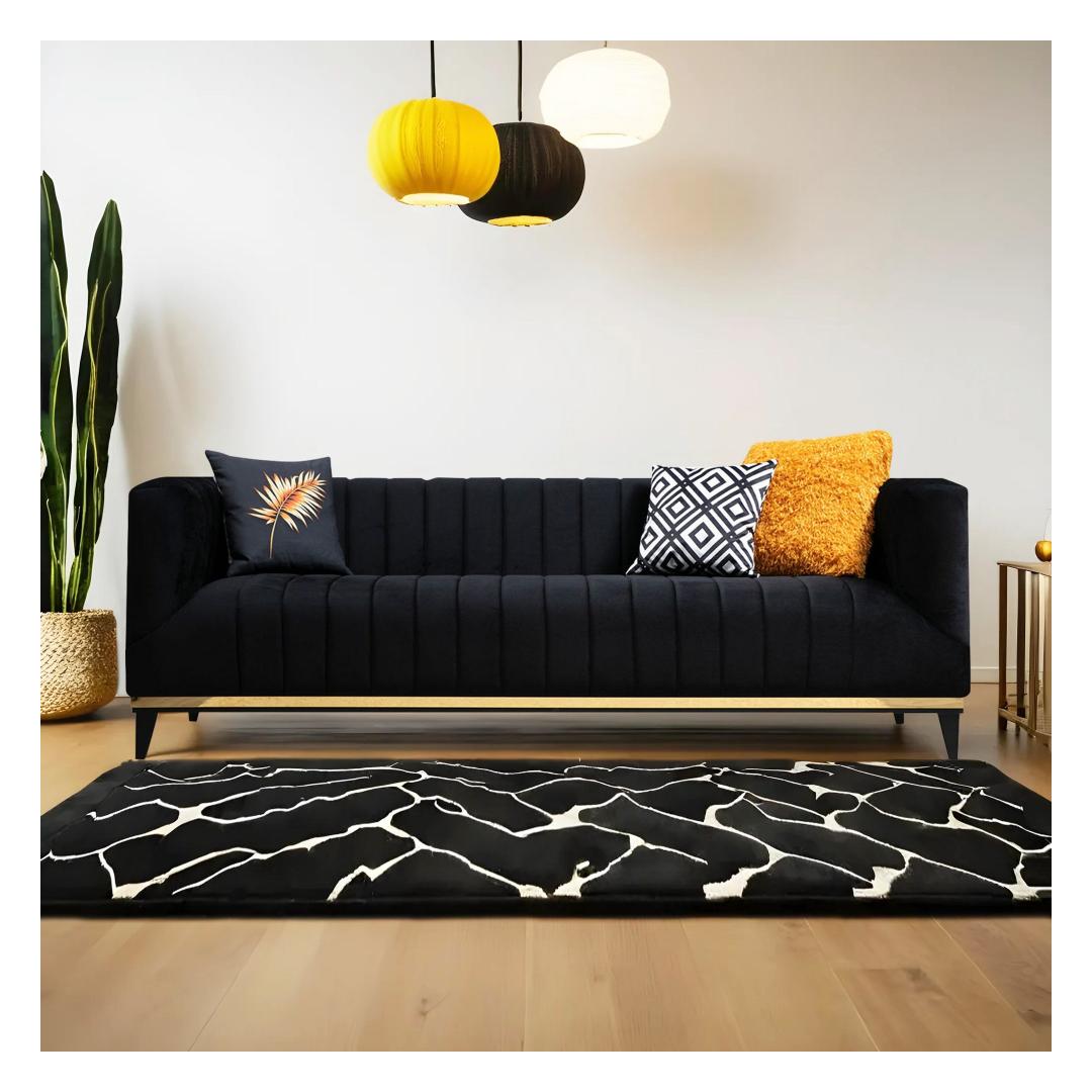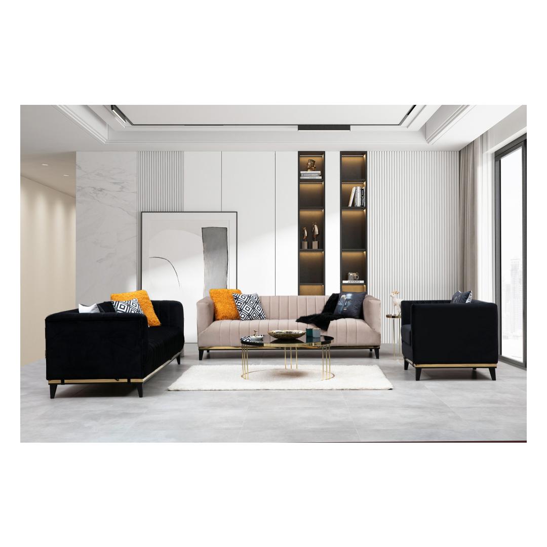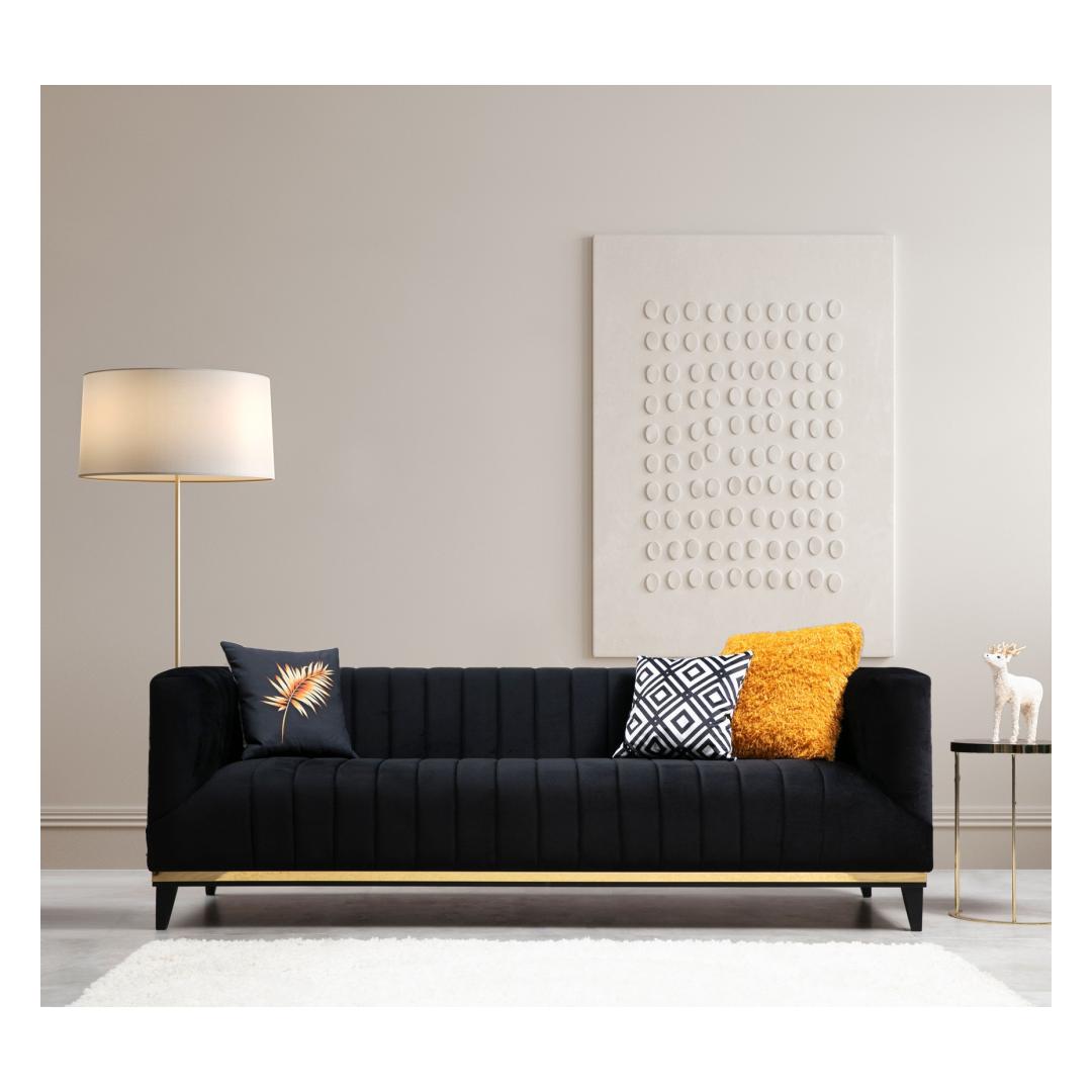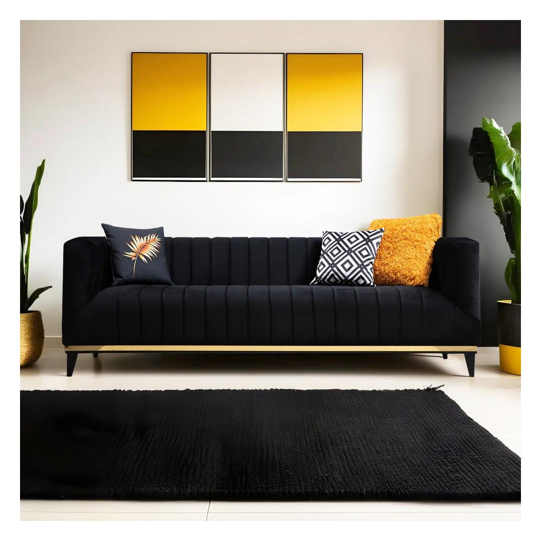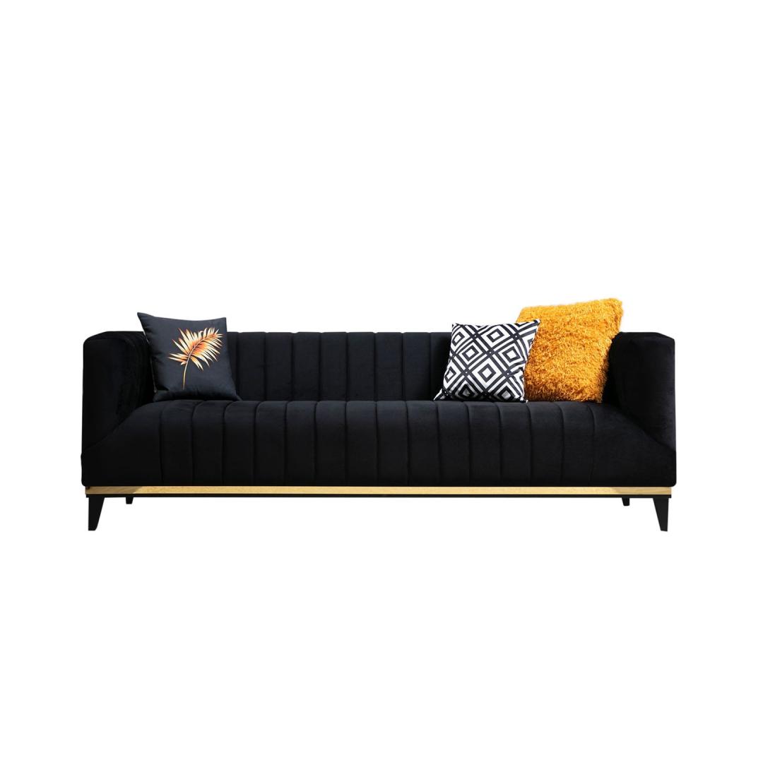Tutvustame meie luksuslikku 3-kohalist diivanit, mille eesmärk on tuua teie koju glamuuri ja elegantsi. See diivan on oma elegantse musta ja kuldse värvilahendusega rafineerituse kehastus.