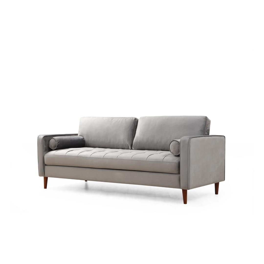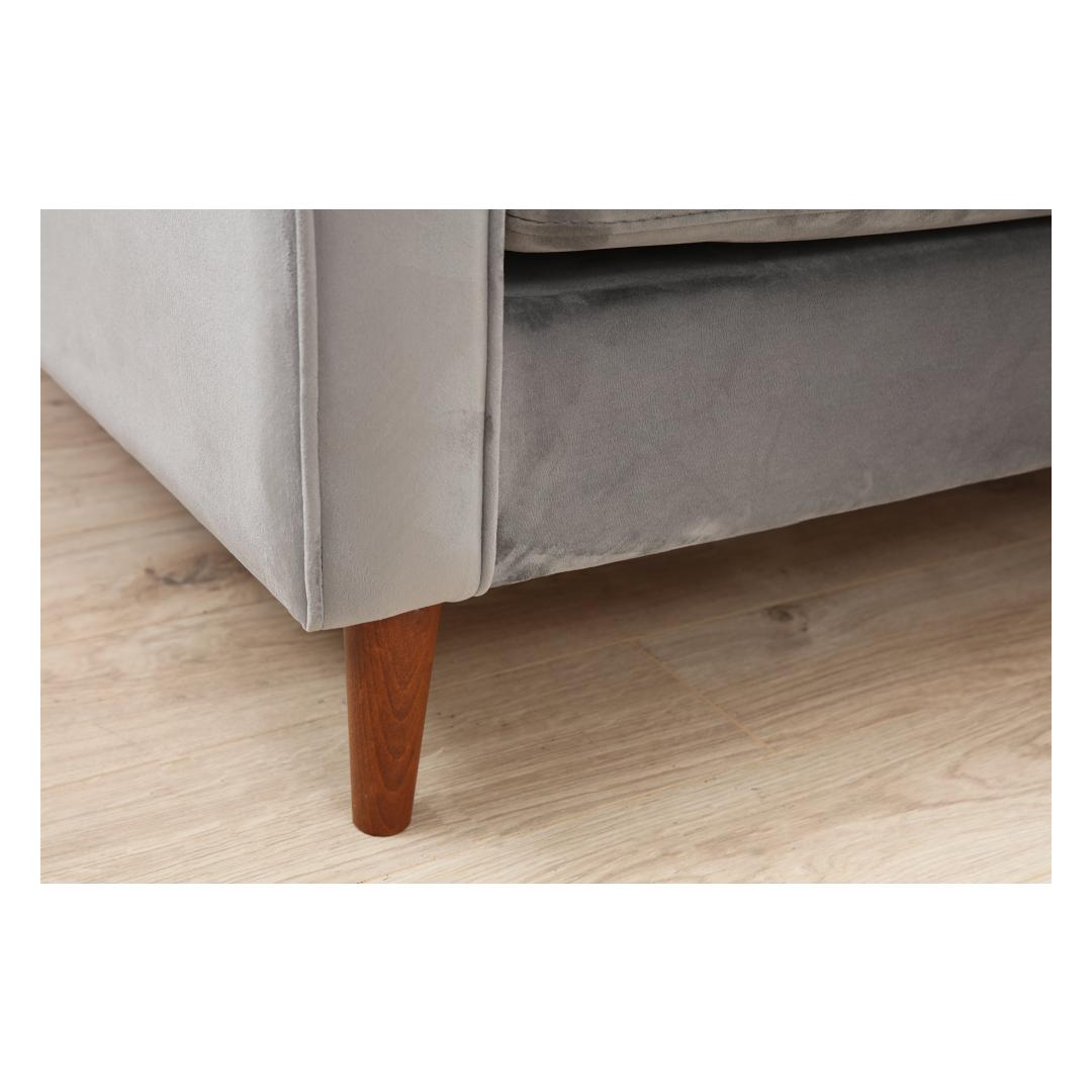Ühevärviline hall kangas lisab igasse ruumi rafineeritust, muutes selle mitmekülgseks valikuks erinevatesse sisustusstiilidesse. Pähklipuidust jalad ei paku mitte ainult stabiilsust, vaid lisavad kogu disainile ka soojust ja elegantsust.