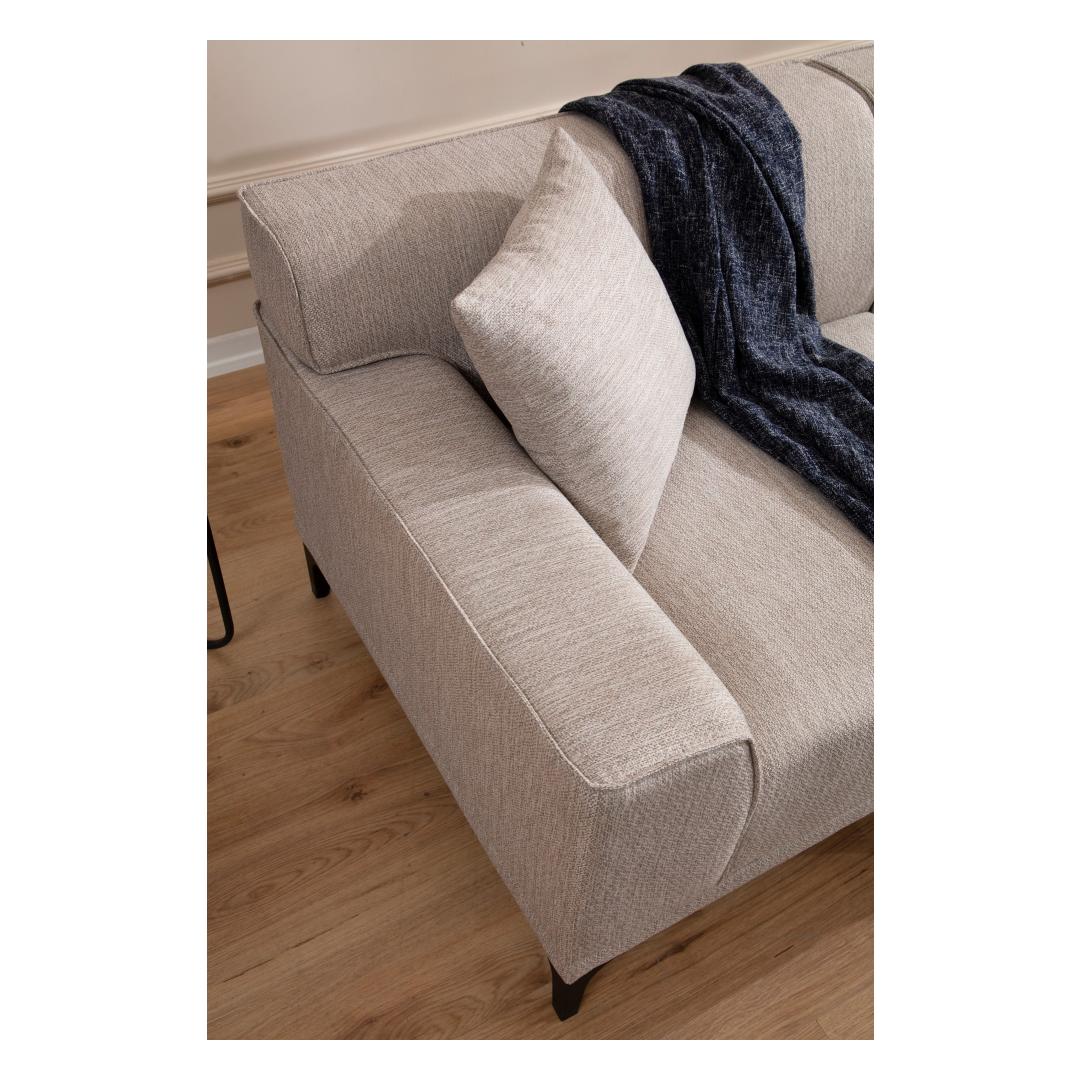 Valmistatud lepapuust ja puitlaastplaadi raamiga, on see diivan mitte ainult stiilne, vaid ka loodud kestma. 100% polüestrist kangas on mitte ainult pehme puudutusele, vaid ka kergesti puhastatav, muutes hooldamise lihtsaks. 8 cm 28 DNS hall vaht ja 5 cm 24 DNS suledega istumisosa tagavad ületamatu mugavuse, samas kui 24 DNS vaht ja suledega seljatoe pakuvad suurepärast tuge.
