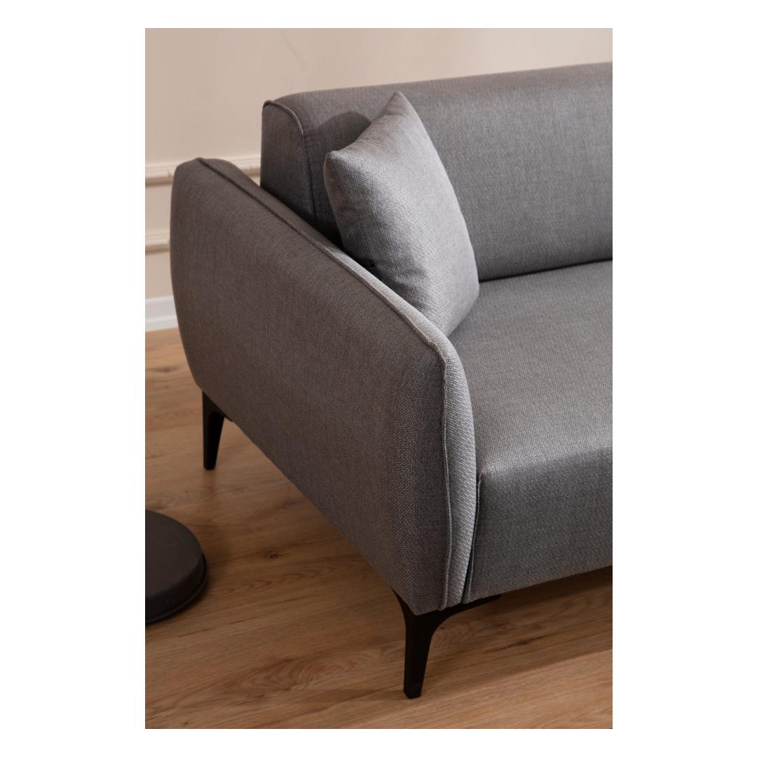 Kuivpuhastatav kangas tagab lihtsa hoolduse, hoides teie diivanit aastaid värskena ja uuena. Massiivne hall värvus, kombineerituna tööstusliku ja skandinaavia kontseptsiooniga, lisab igasse tuppa elegantsuse.