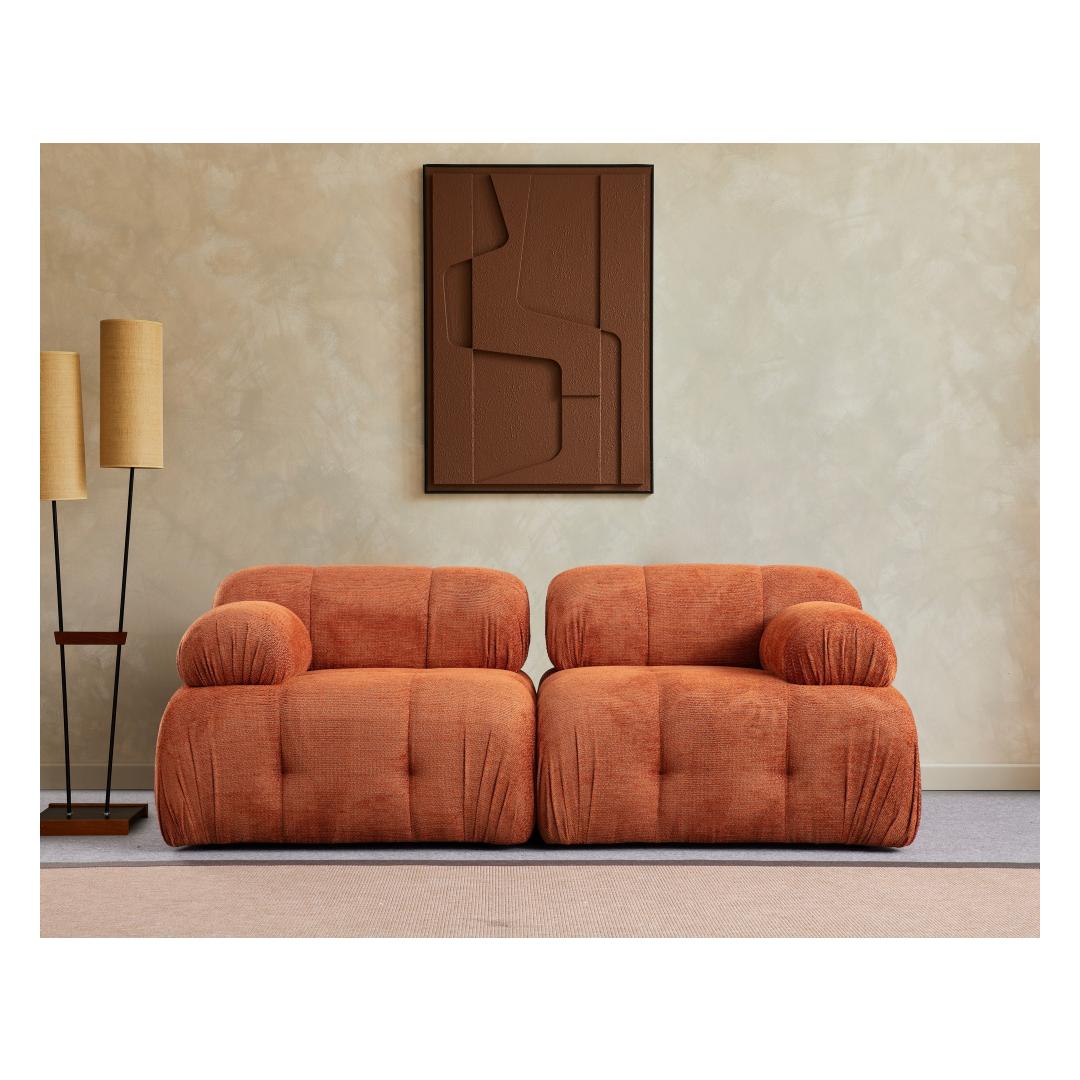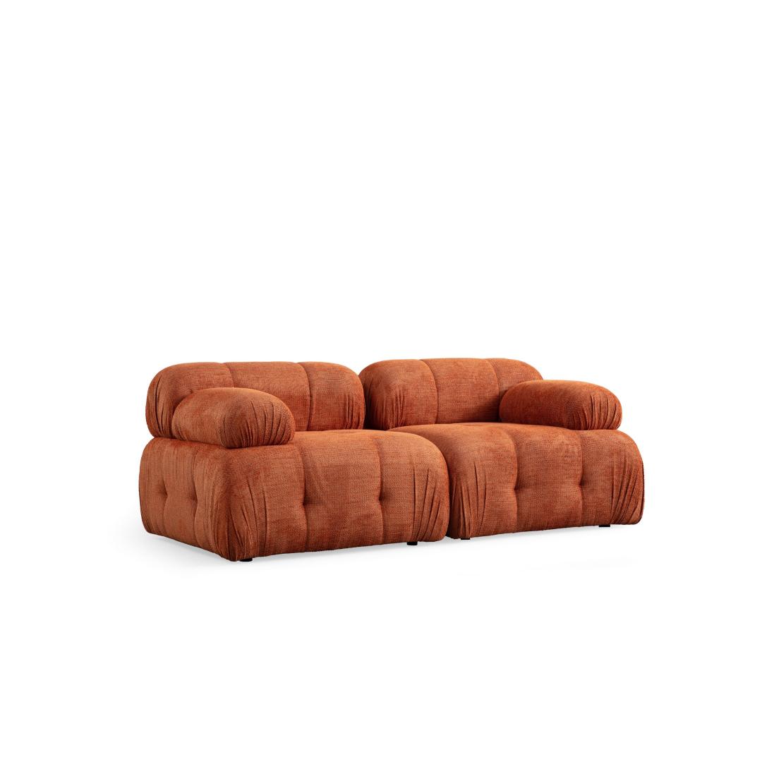 Selle diivani elegantset siluetti täiendavad moodsad mustad plastmassist jalad, mis lisavad igasse ruumi elegantsust. Oranžikas värv lisab elujõudu, muutes selle diivani teie elutoa keskpunktiks.