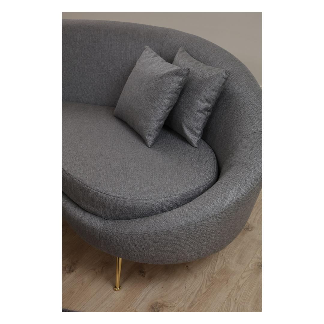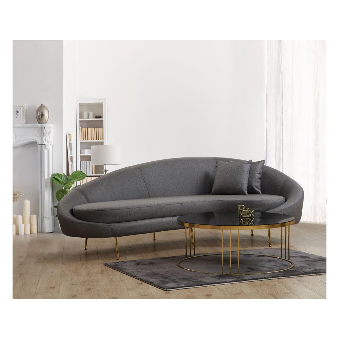 Selle elegantse ja moodsa disainiga diivan tõstab vaevata iga ruumi esteetikat. Tumehall värvus lisab elegantsust, samas kui kuldsed metalljalad annavad luksusliku ja glamuurse puudutuse.