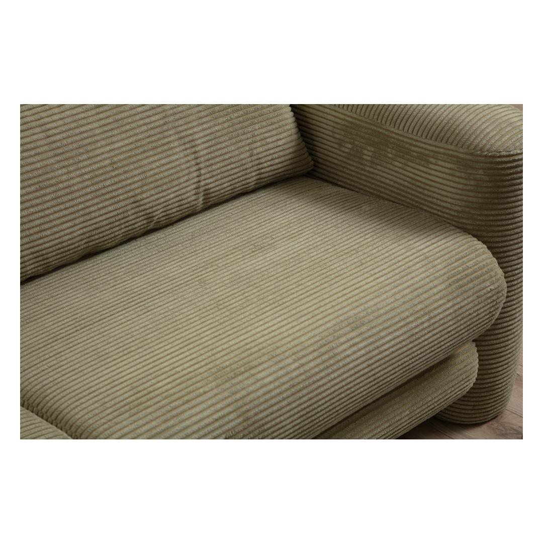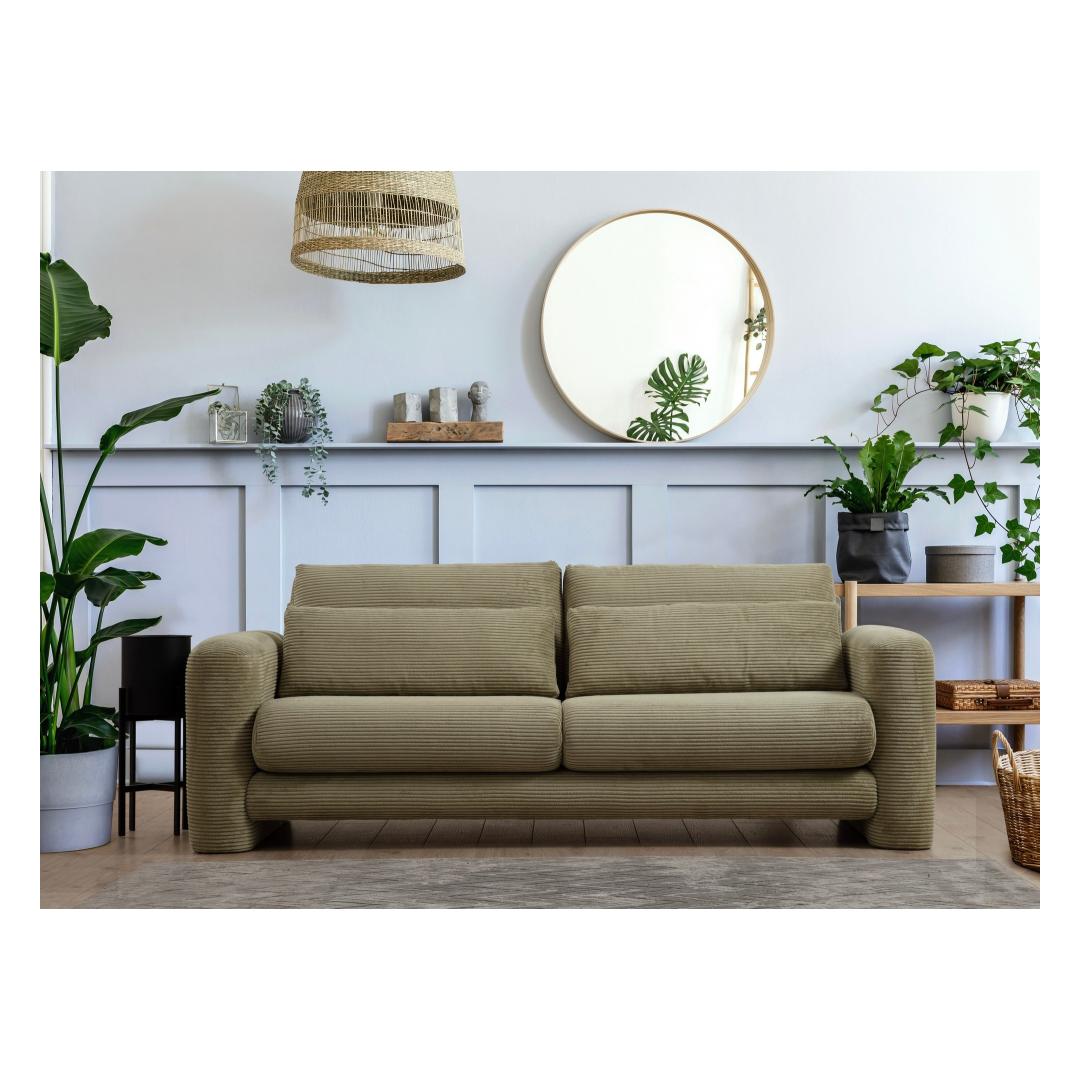 Meie diivan on valmistatud tugevast pöögipuidust ja puitlaastplaadist raamiga, mis on vastupidav ja elegantse välimusega. 100% polüesterkangas lisab luksuslikkust, samas kui roheline värv lisab teie eluruumile elavat poppi. Ümmargused plastmassist jalad ei paku mitte ainult stabiilsust, vaid suurendavad ka üldist esteetilist atraktiivsust.