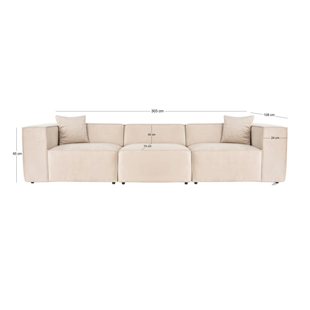 Selle diivani pikkus on 303 cm, laius 108 cm ja kõrgus 65 cm, mis annab teile ja teie lähedastele piisavalt ruumi lõõgastumiseks ja lõõgastumiseks. Istme kõrgus 40 cm ja istme sügavus 74 cm tagavad optimaalse mugavuse, samas kui käetoe laius 24 cm lisab lisamugavust.