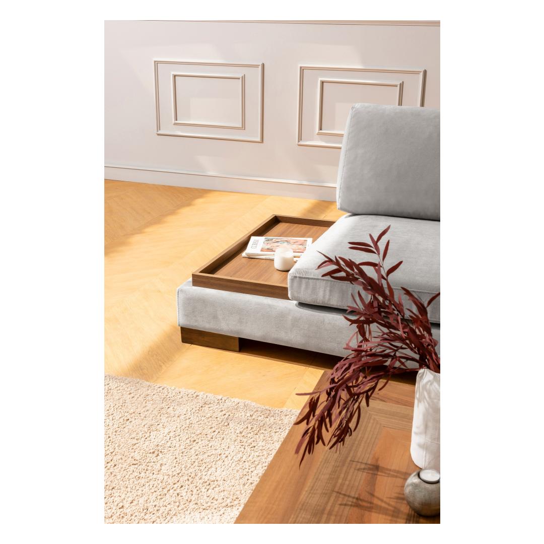 Selle sohva voolujooneline disain tõstab kindlasti sinu kodu sisustust, luues stiilse ja kutsuva atmosfääri, kus sina ja sinu külalised saavad nautida. Heledat halli värvi lisab rafineeritust, samas kui pähklipuidust jalad pakuvad tugevat ja elegantset alust.