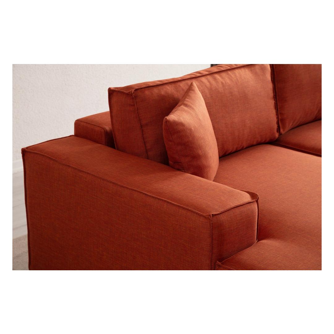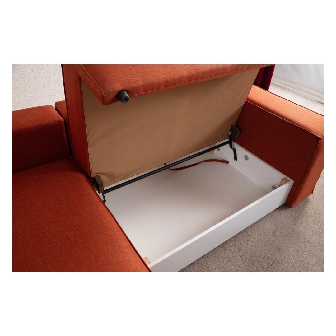 Tutvustame meie uimastavat nurgadiivanvoodit, mis on ideaalne täiendus teie eluruumile. Selle elegantse disaini ja elava oranži värviga diivanvoodi muudab teie toa kohe hubaseks ja kutsuvaks paigaks.