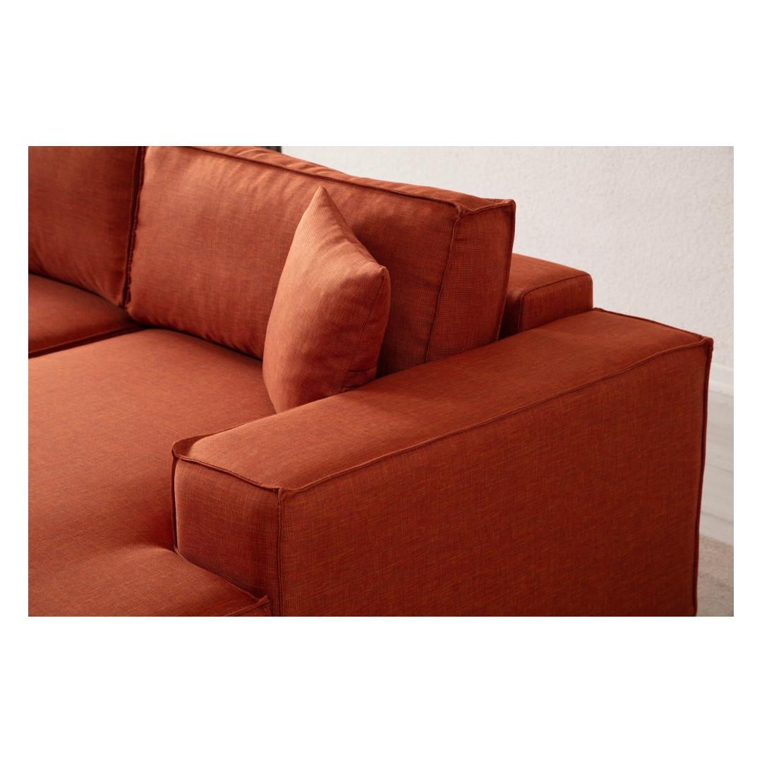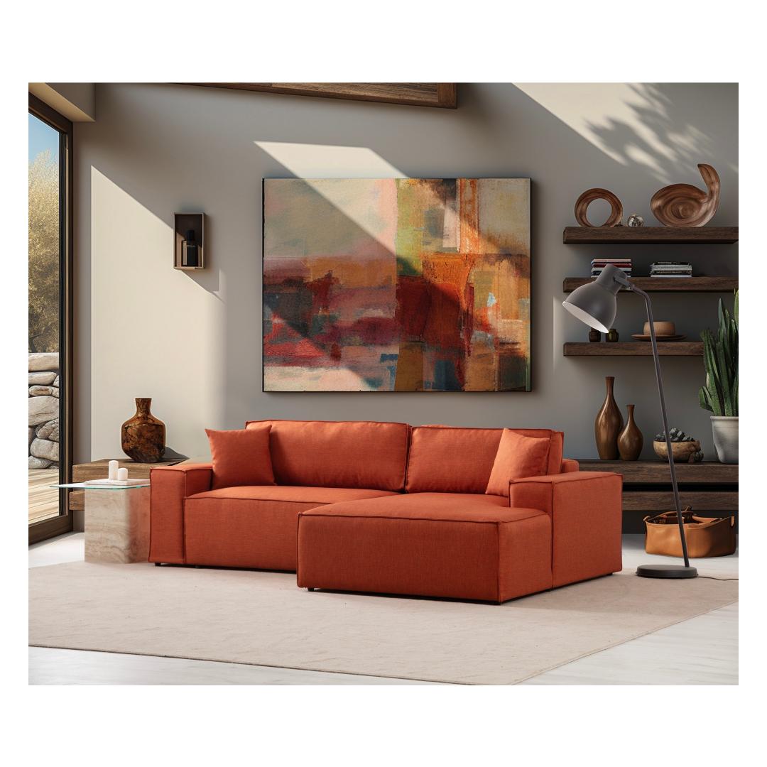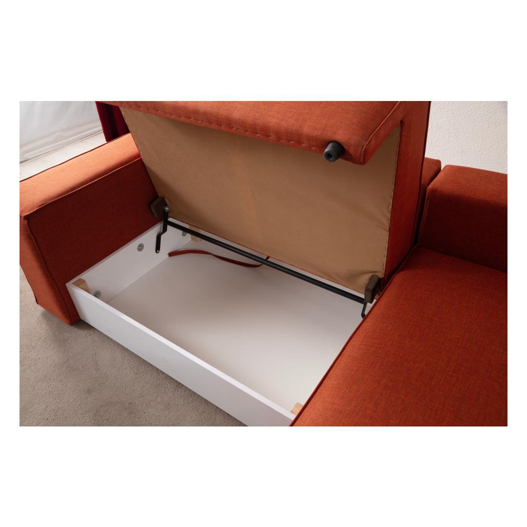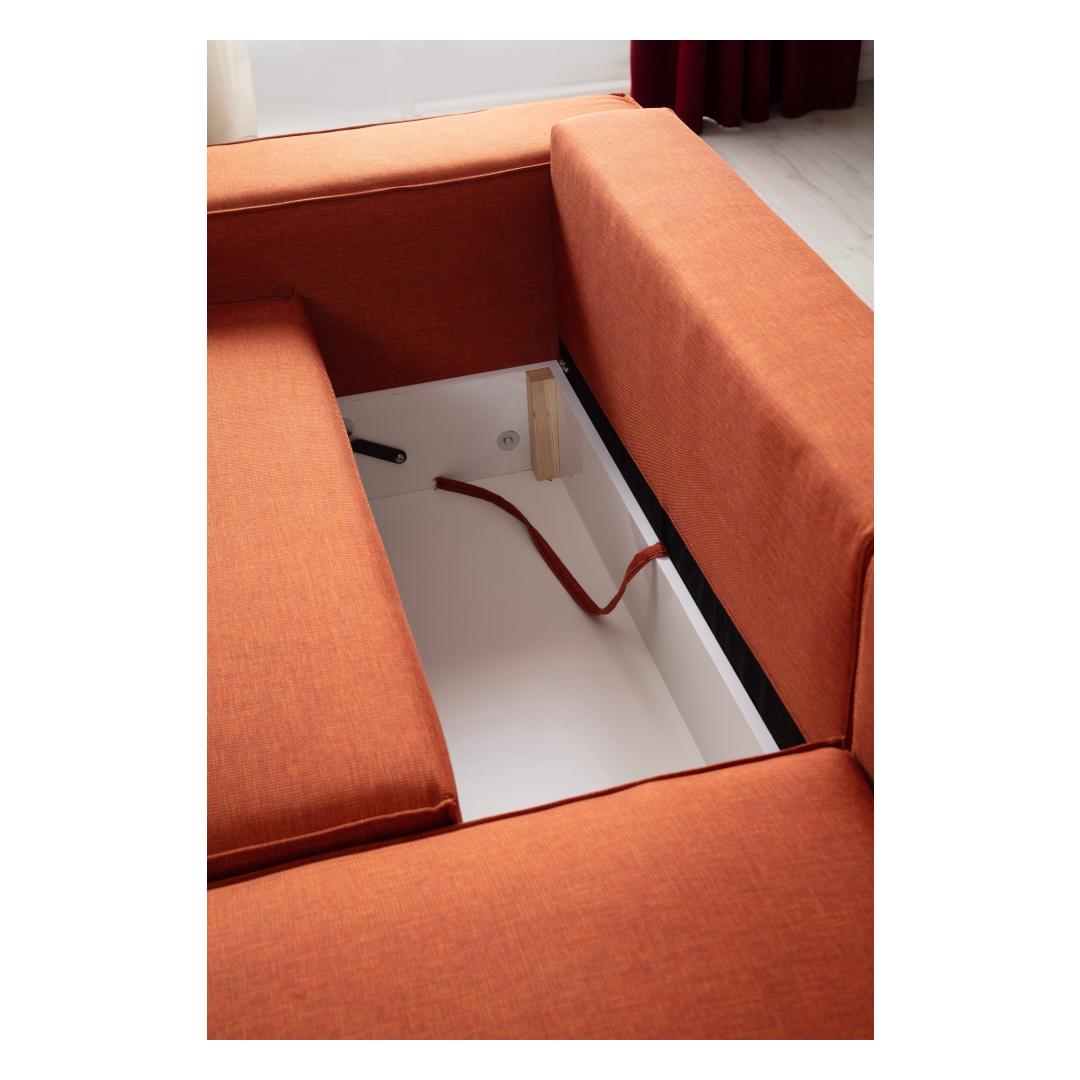 Muuda oma eluruum meie kauni oranži nurgadiivanvoodiga. See mitmekülgne mööbliese on mitte ainult stiilne, vaid ka äärmiselt funktsionaalne, ideaalne neile, kes armastavad külalisi vastu võtta või lihtsalt mugavalt lõõgastuda.