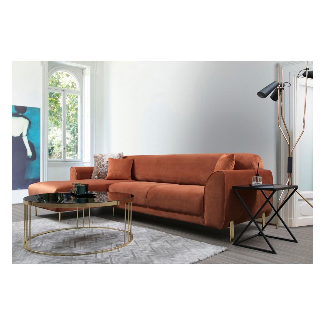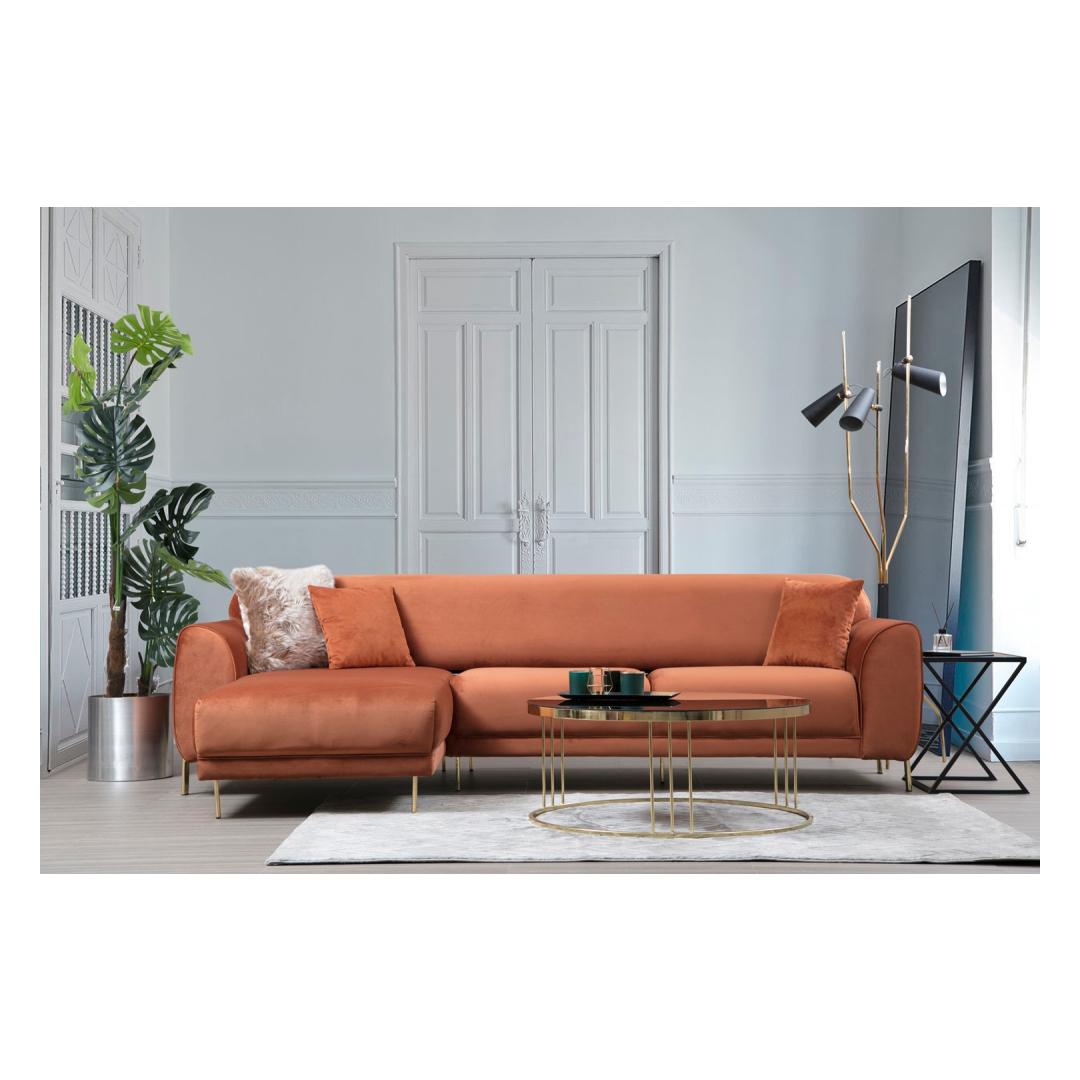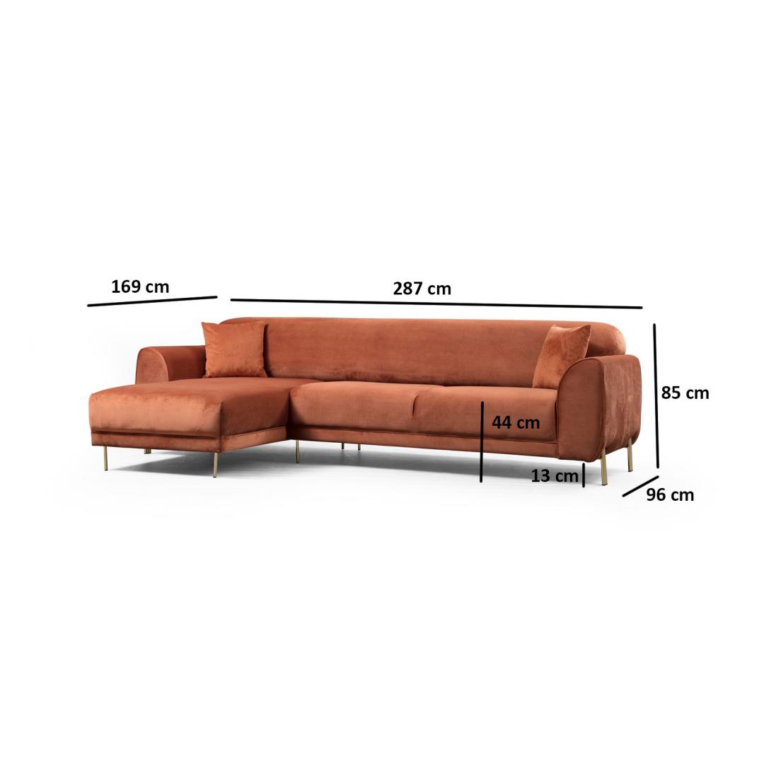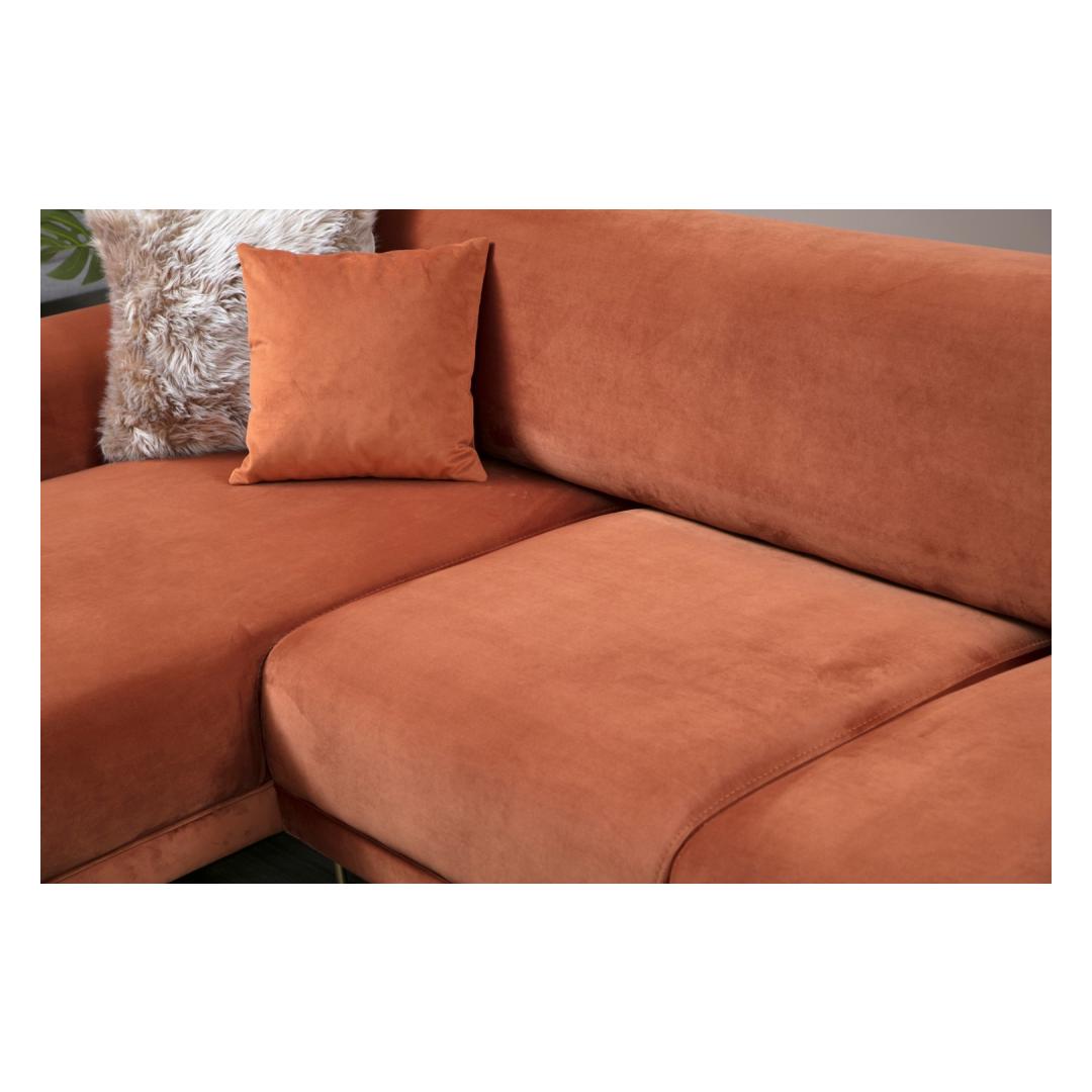 Muuda oma eluruum meie kauni nurgadiivanvoodiga, mis on elava kaneelivärvi. See mitmekülgne mööbliese lisab sinu tuppa värvi ja pakub samal ajal ideaalset kohta lõõgastumiseks, puhkamiseks ja isegi külaliste ööbimiseks.