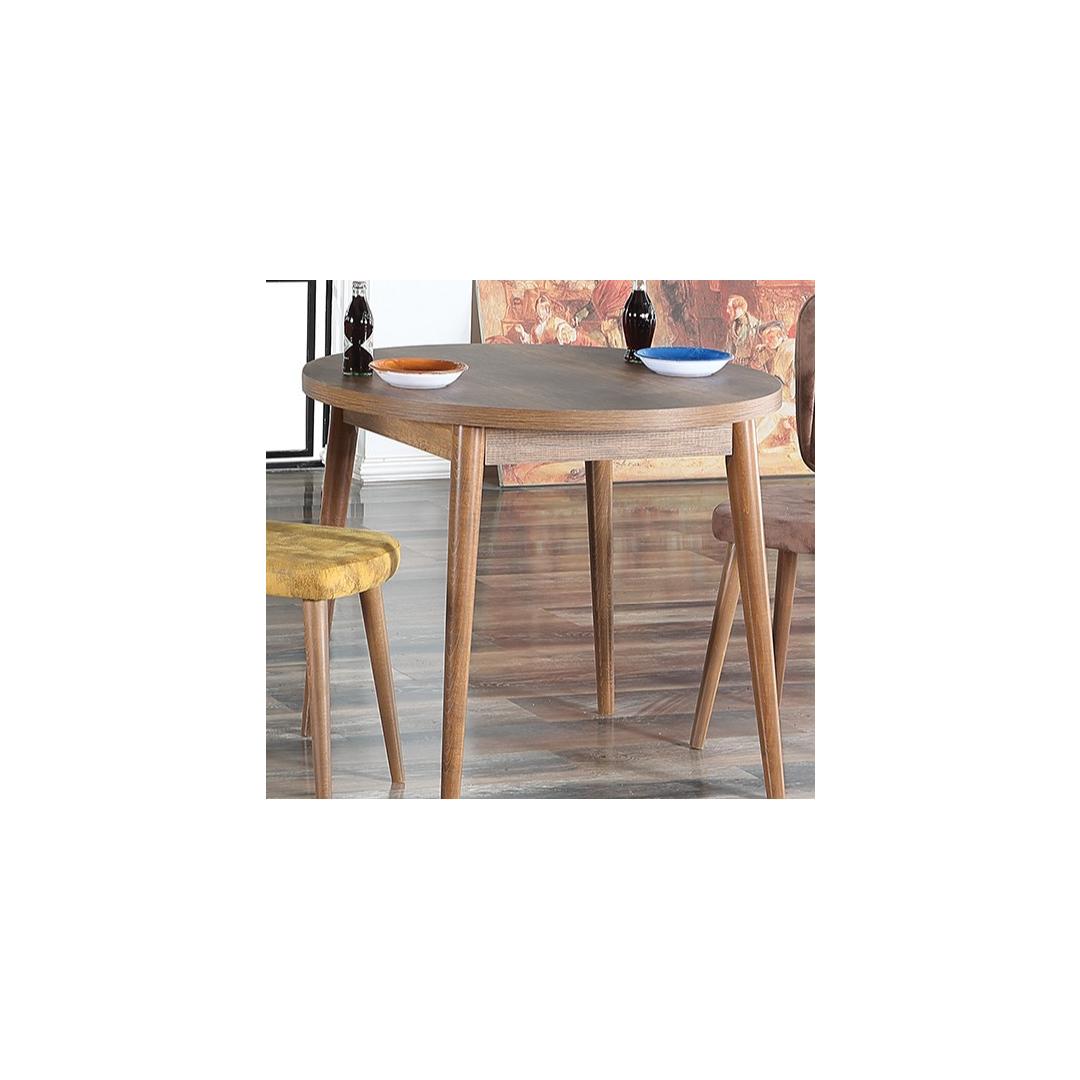 Selle söögilaua ümmargune kuju loob sooja ja kutsuva atmosfääri, mis sobib ideaalselt pere ja sõpradega koosviibimiseks. Pähklipuu värv lisab igasse söögisaali rikkalikkust ja luksust, muutes selle ruumi keskpunktiks.