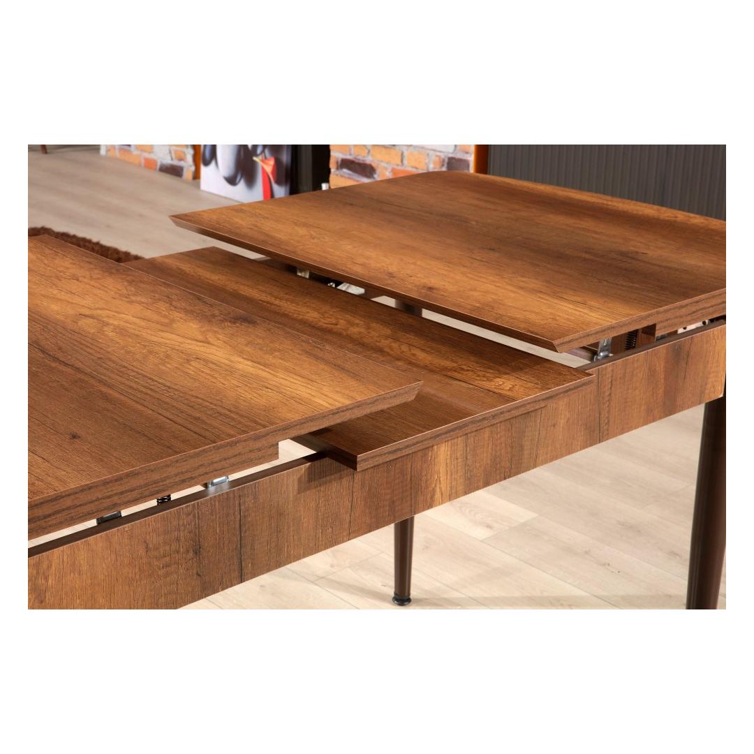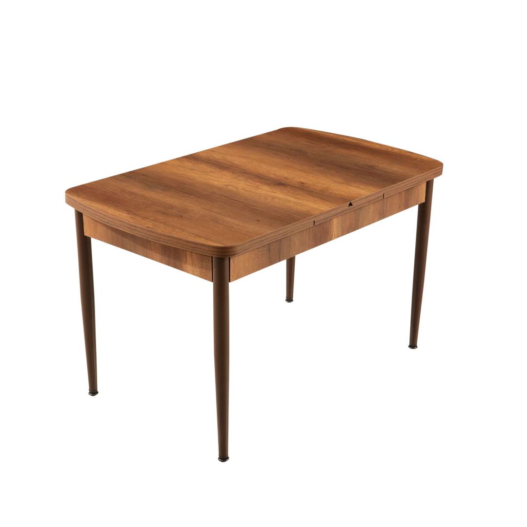 Valmistatud 100% melamiiniga kaetud puitlaastplaadist, ei ole see laud mitte ainult vastupidav, vaid ka kergesti puhastatav ja hooldatav. Metallist jalad tagavad stabiilsuse ja toe, tagades, et teie laud kestab aastaid. Pähklipuu ja pruuni värvi kombinatsioon lisab igale söögikohale elegantsi.