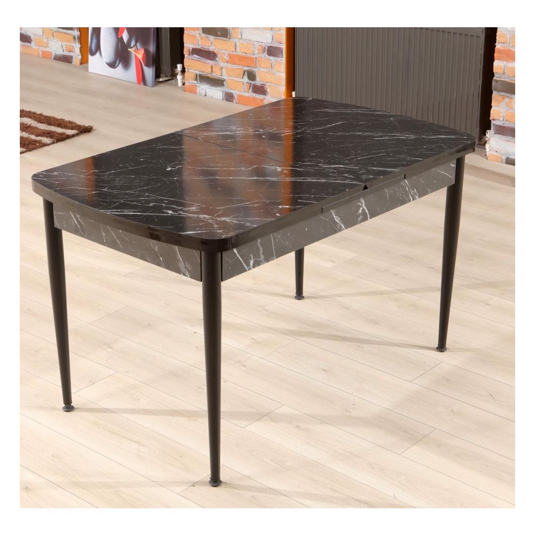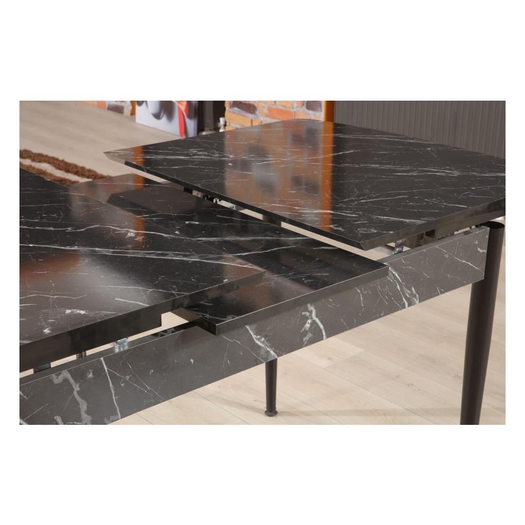 Pikendatav söögilaud on moodsa disainiga, millel on puhtad jooned ja elegantne viimistlus. Musta ja valge värvi kombinatsioon annab sellele kaasaegse välimuse, mis täiendab mis tahes sisustusstiili.
