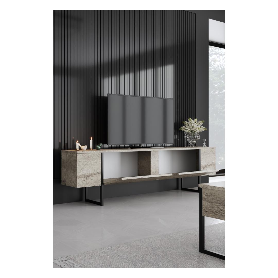 Muutke oma elutuba stiilseks ja moodsaks ruumiks meie uimastamise teleri stendiga. 100% melamiiniga kaetud osakeste tahvlilt meisterdatud teleri stend pole mitte ainult vastupidav, vaid ka uskumatult klanitud ja elegantne. Traverteni ja mustade värvide kombinatsioon lisab igale ruumile keerukust, muutes selle teie kodukaunistusele ideaalseks lisaks.