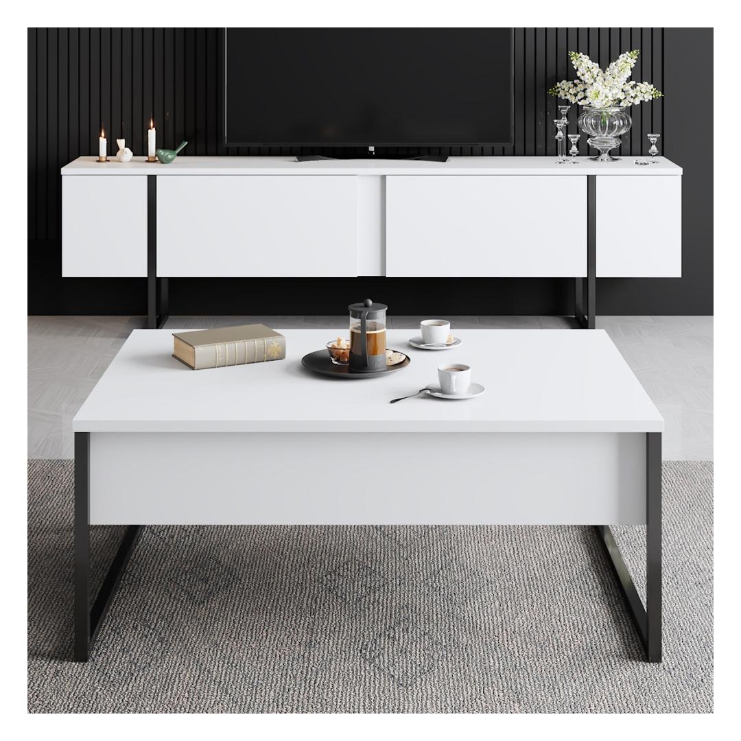 Telerialusel on silmatorkav valgete ja mustade värvide kombinatsioon, mis lisab teie elutuppa kaasaegset hõngu. Selle stiilne ja minimalistlik disain täiendab vaevata mis tahes interjööri stiili, muutes selle mitmekülgseks täienduseks teie kodu sisustusele.