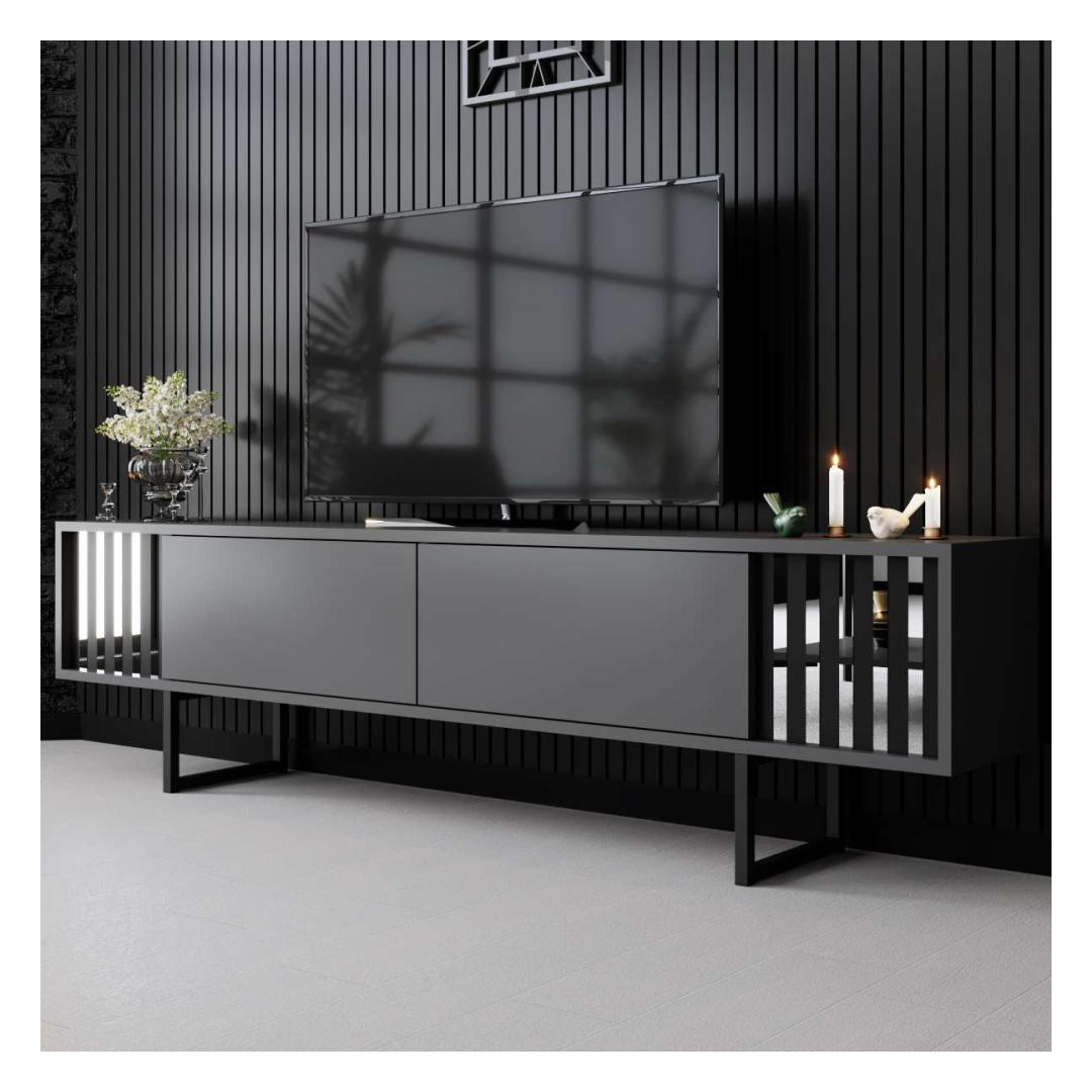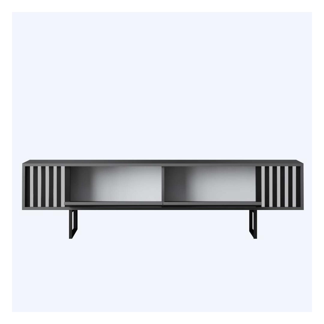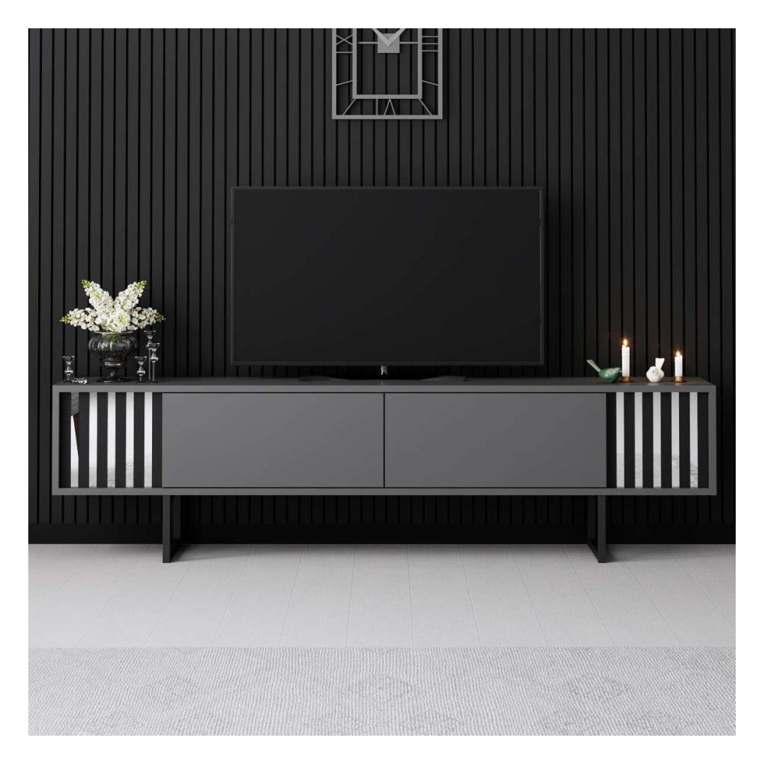 Muuda oma elutuba stiilseks ja modernseks ruumiks meie elegantse telerialuse abil. Valmistatud 100% melamiinkattega puitlaastplaadist, on see alus mitte ainult vastupidav, vaid kiirgab ka elegantsi. Metalljalad lisavad peenust, samas kui antratsiidi ja musta värvikombinatsioon toob sinu kodu sisustusse kaasaegse ilme.