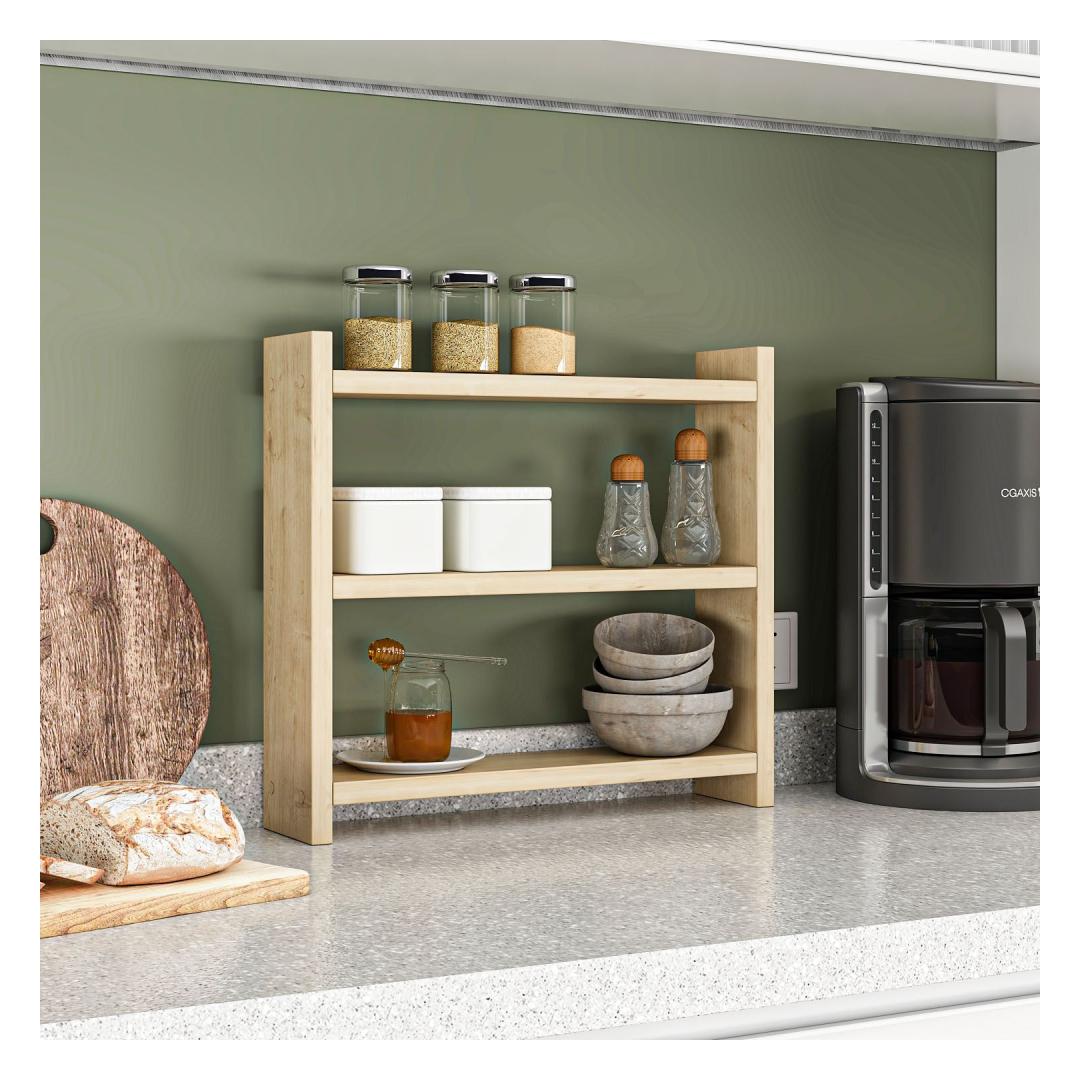 Valmistatud 100% melamiiniga kaetud puitlaastplaadist, see riiul on valmistatud kestma. See on vastupidav, kergesti puhastatav ning kriimustuste ja plekkide suhtes vastupidav, mistõttu on see ideaalne valik hõivatud kööki. Tugev konstruktsioon tagab, et teie esemed on turvaliselt ja ilma kahjustuste ohuta hoiustatud.