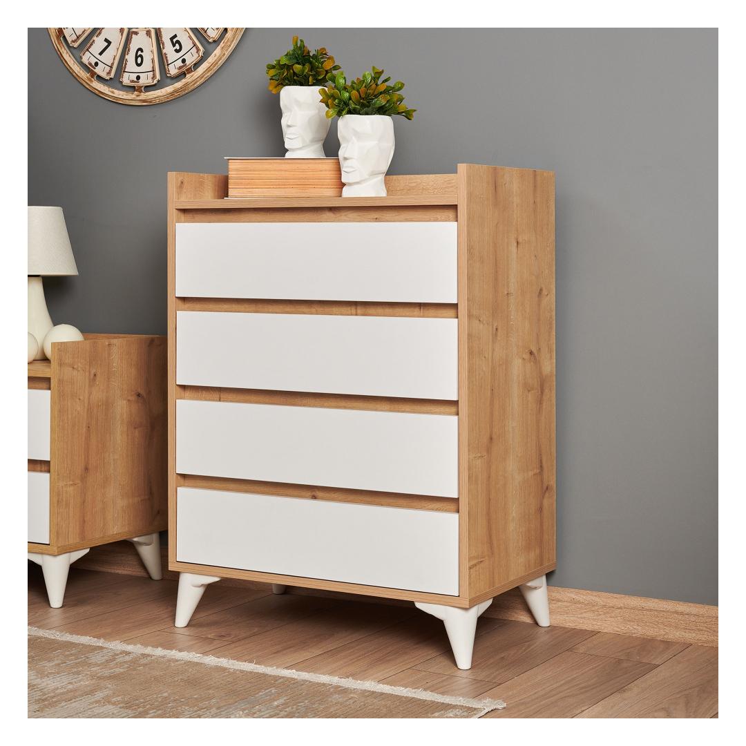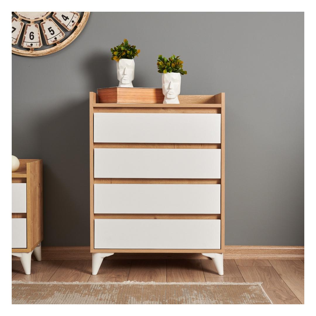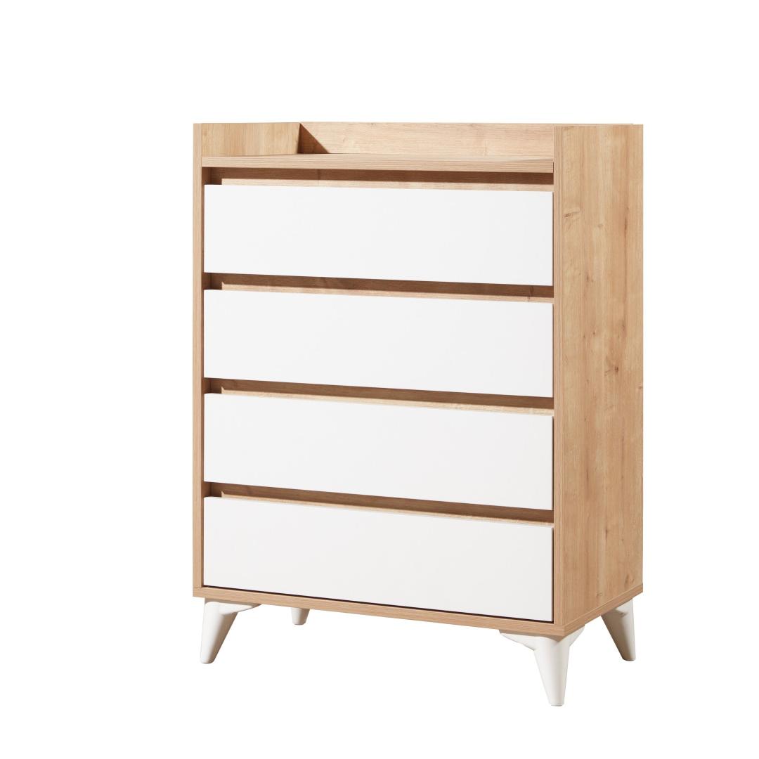 Tänu neljale avarale sahtlile ja täiendavale panipaigale pakub see kapp piisavalt ruumi, et hoida oma riideid, aksessuaare ja isiklikke asju korrastatult. 35 cm pikkused rööpad tagavad sujuva avanemise ja sulgemise, samas kui hõõrdepiduriga hinged lisavad mugavust.