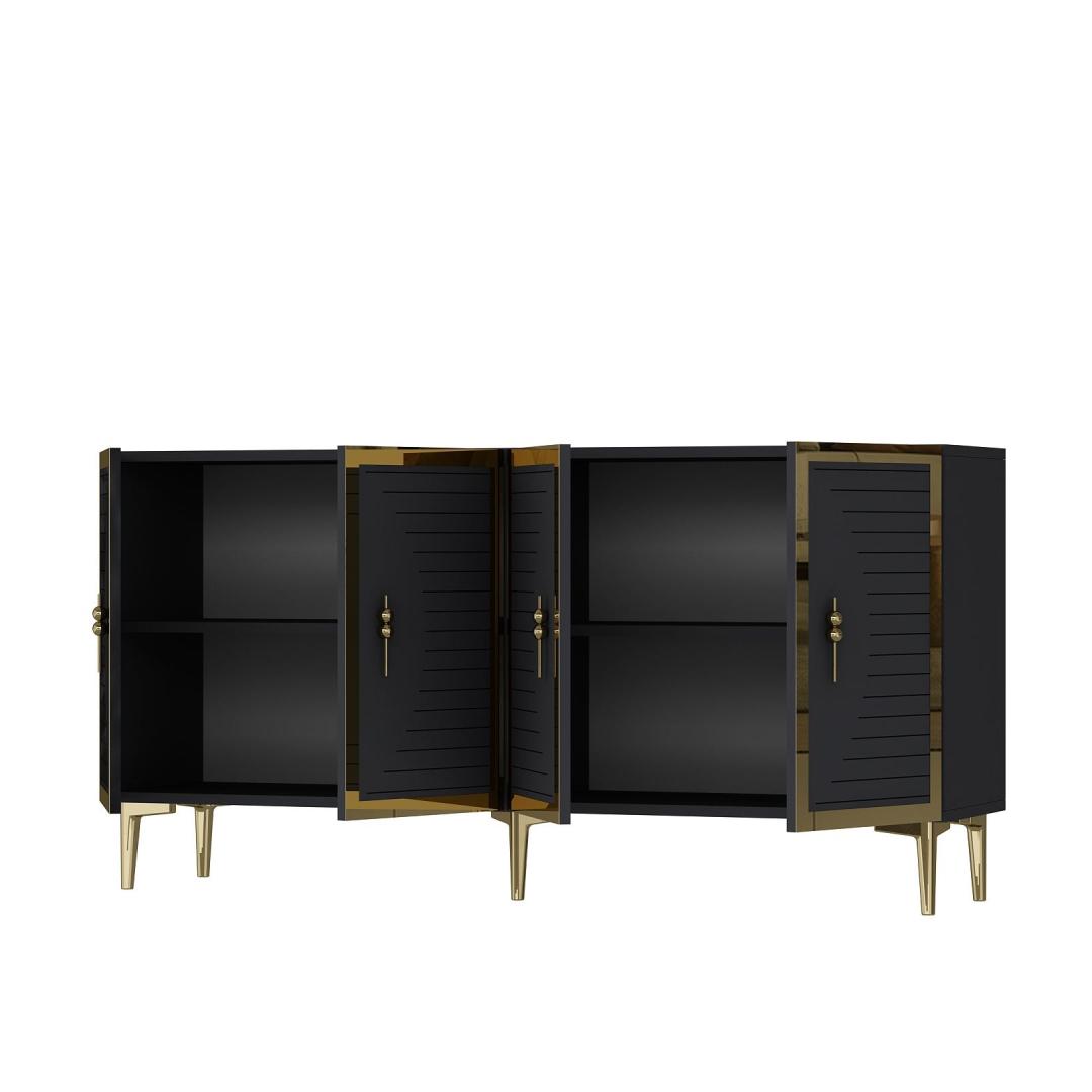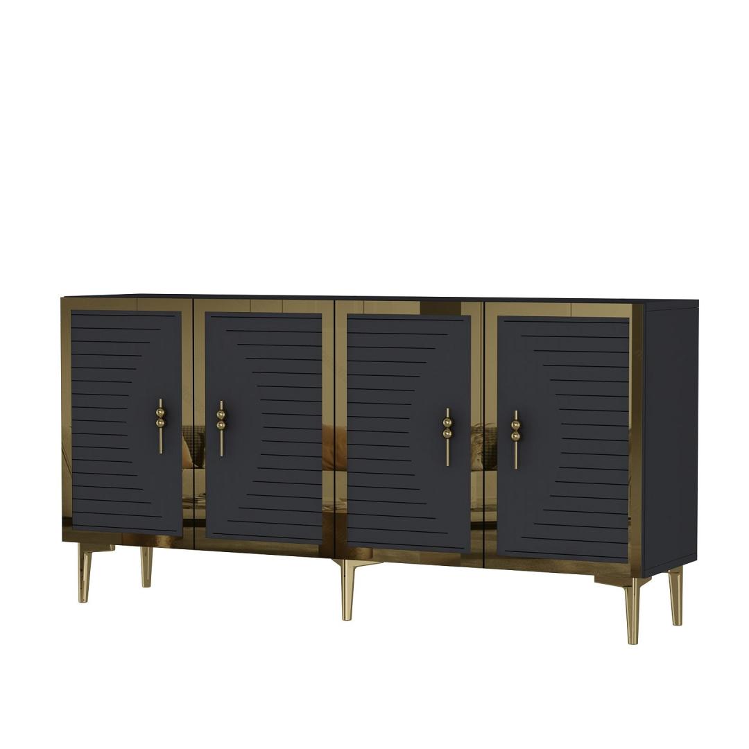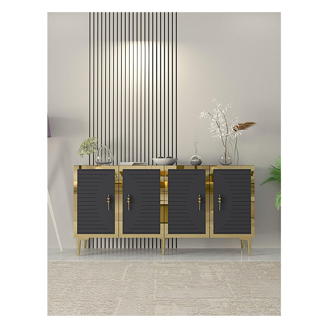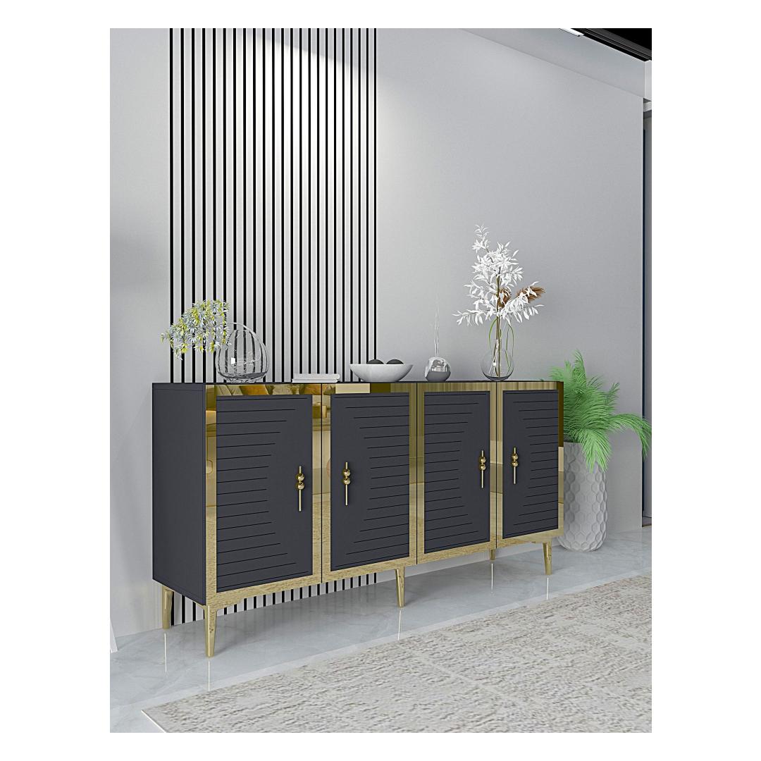 Muuda oma eluruum meie hämmastava konsooliga, mis kiirgab elegantsi ja rafineeritust. Sujuv disain ja ainulaadne antratsiidi ja kuldse värvi kombinatsioon teevad sellest konsoolist tõelise statement-tükki igas toas.