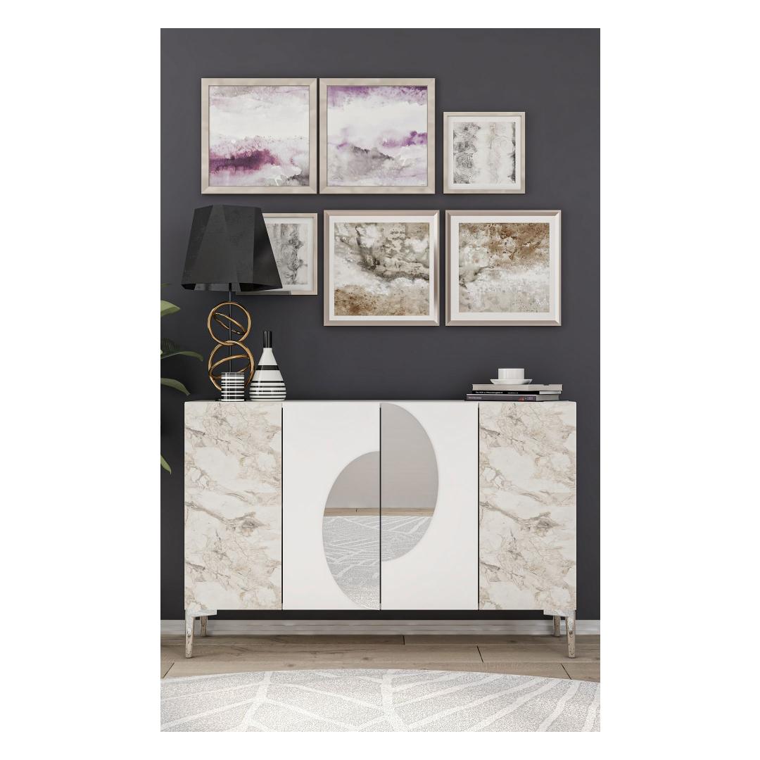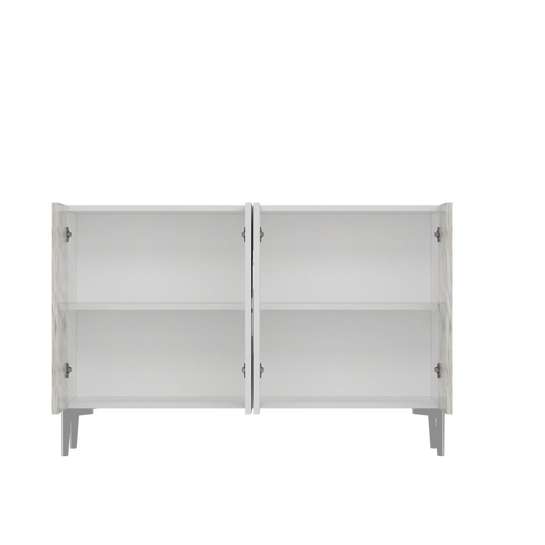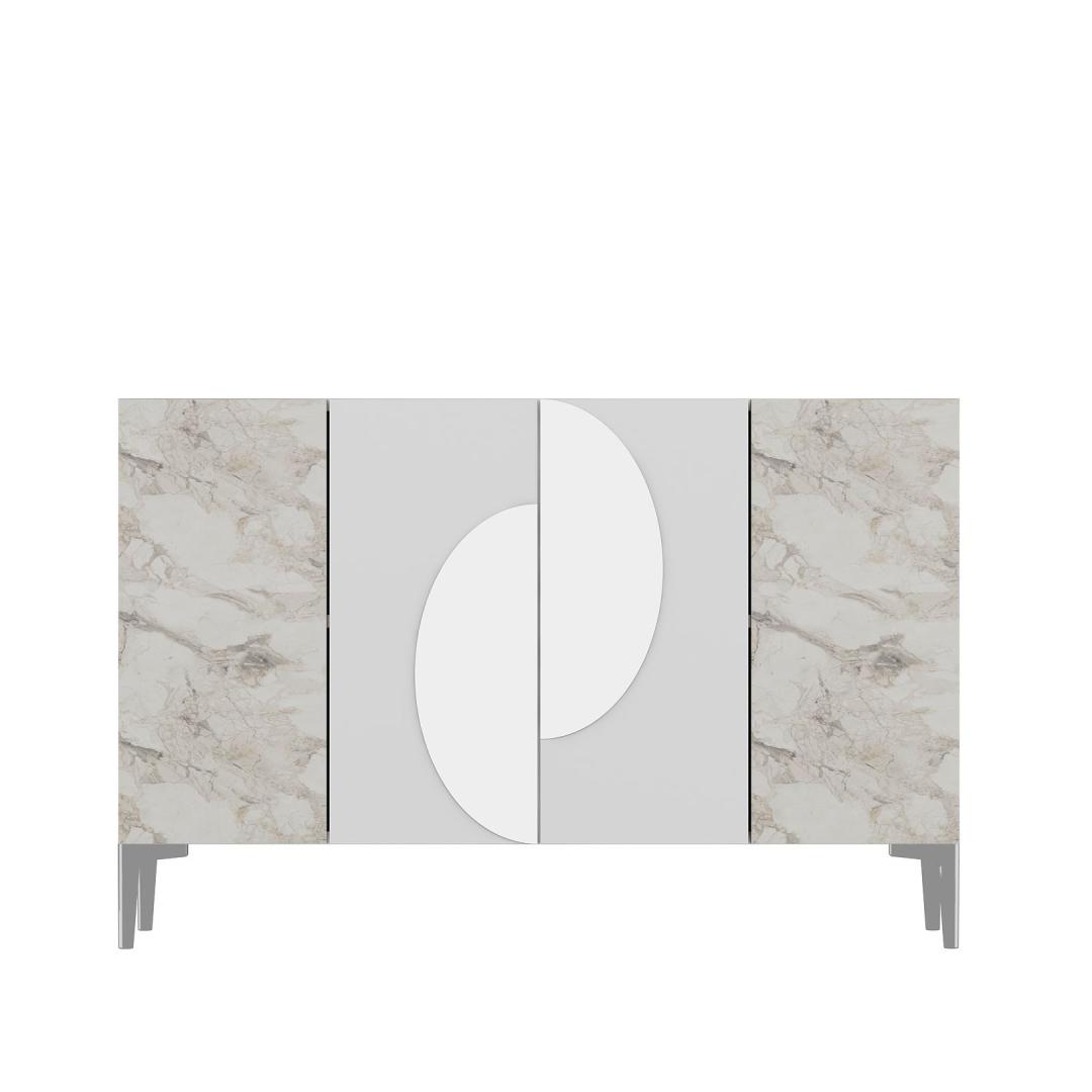 Valge ja Efesose marmoriga viimistlus, millele on lisatud hõbedased detailid, toob igasse ruumi kaasaegse elegantsi. Sujuv ja modernne disain tõstab koheselt sinu sisustust, luues stiilse keskpunkti, mis jätab mulje sinu külalistele.