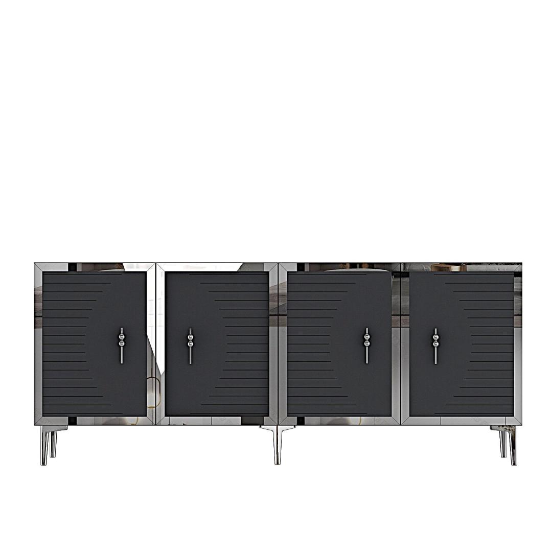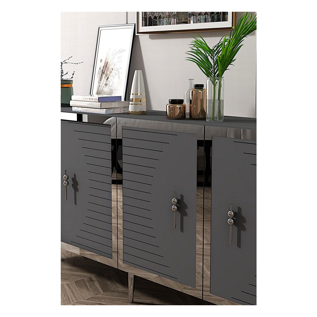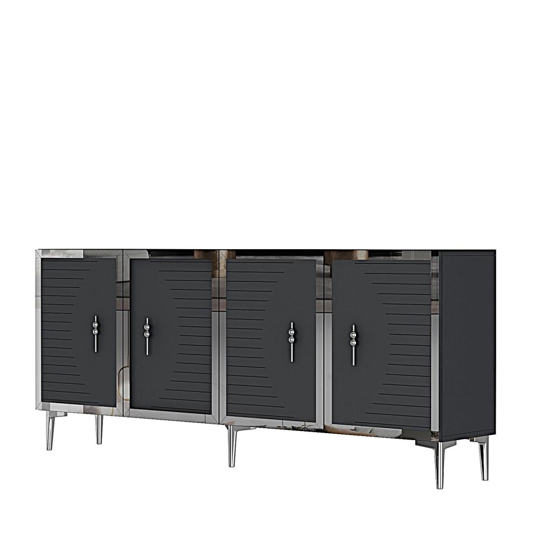 Oma elegantse disaini ja puhaste joontega tõstab see konsool koheselt iga ruumi välimust sinu kodus. Antratsiidi ja hõbedase värvi kombinatsioon lisab sinu eluruumile luksuse ja klassi puudutuse.