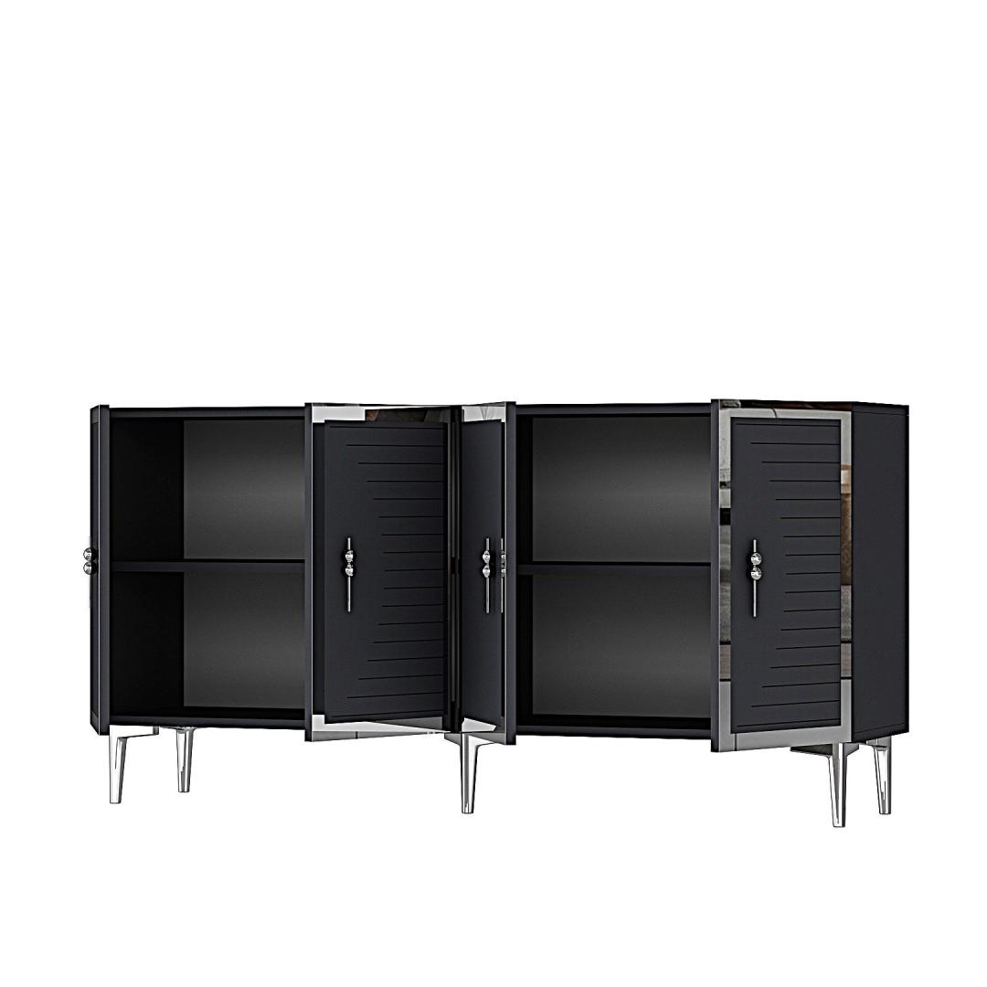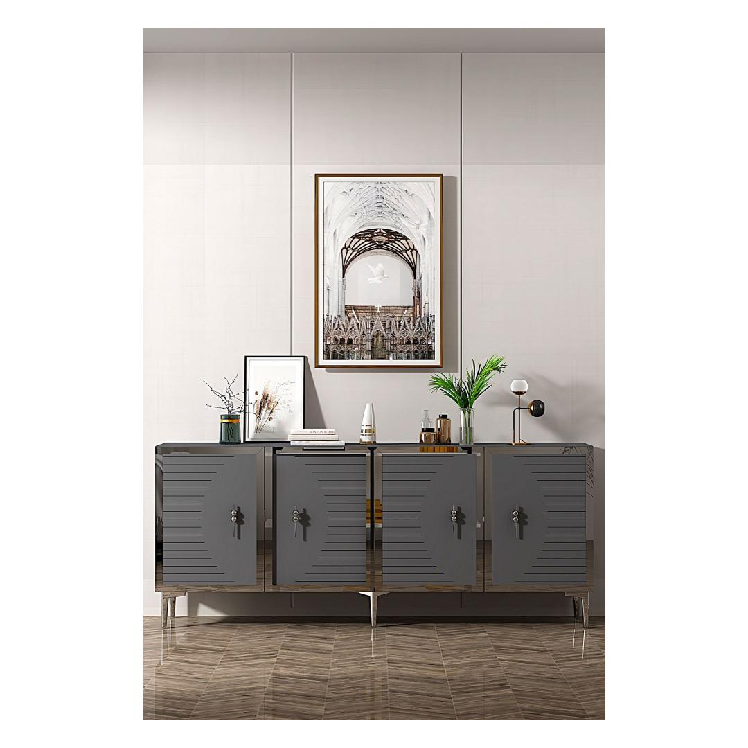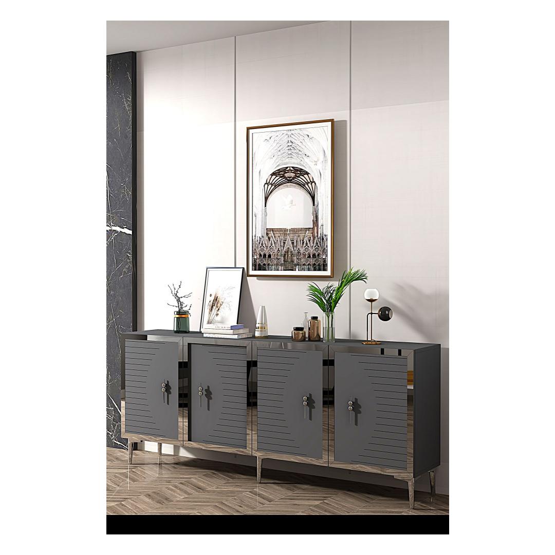 Oma elegantse disaini ja puhaste joontega tõstab see konsool koheselt iga ruumi välimust sinu kodus. Antratsiidi ja hõbedase värvi kombinatsioon lisab sinu eluruumile luksuse ja klassi puudutuse.