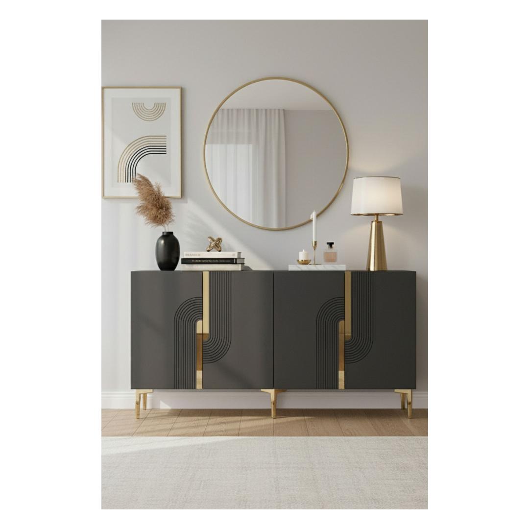 Muuda oma eluruum meie kauni antratsiidi ja kuldse konsooliga. See tükk ei ole lihtsalt mööbel, vaid stiili ja rafineerituse väljendus. Sujuv disain ja elegantne värvikombinatsioon tõstavad koheselt iga ruumi ilme, muutes selle kõigi sinu koosolekute ja vestluste keskpunktiks.