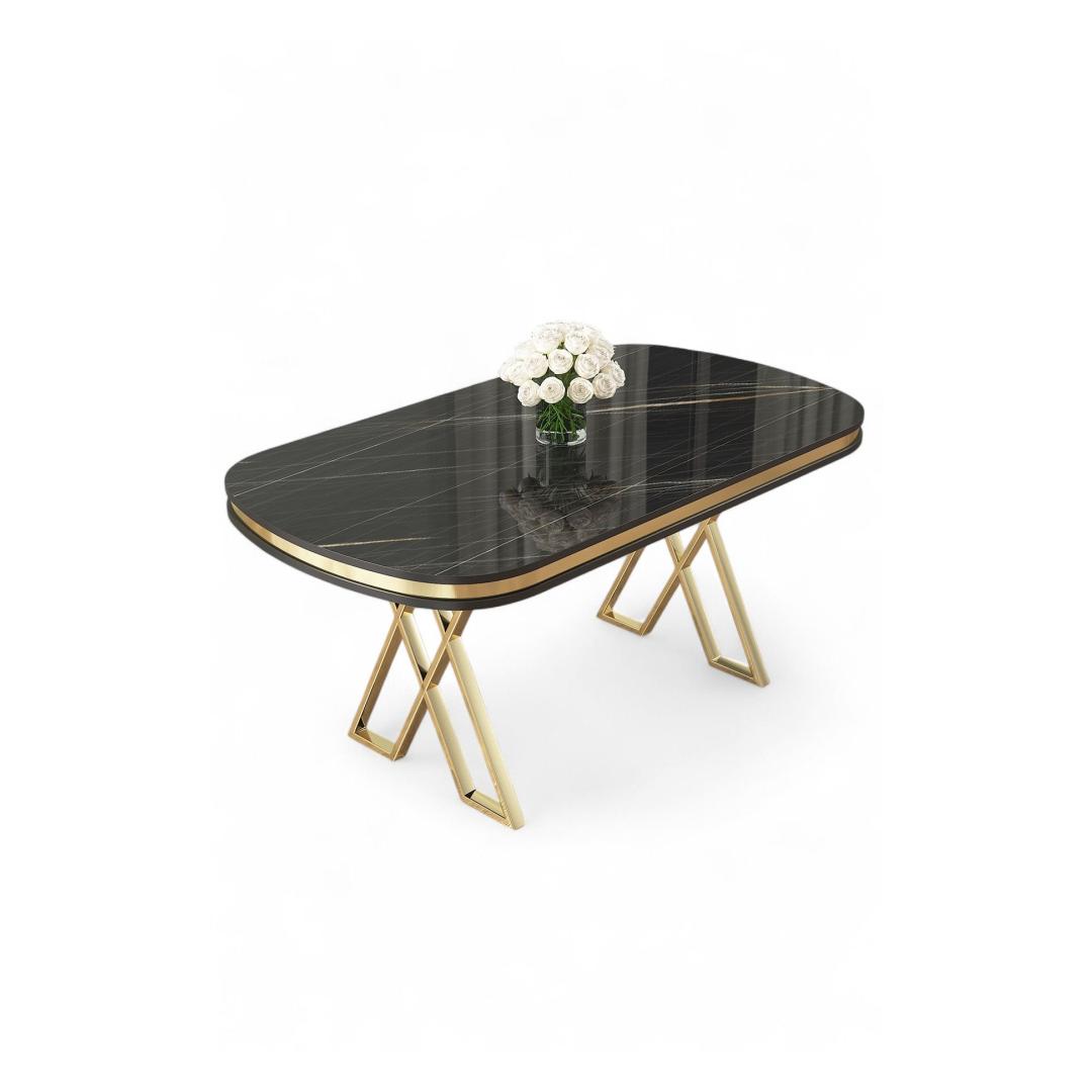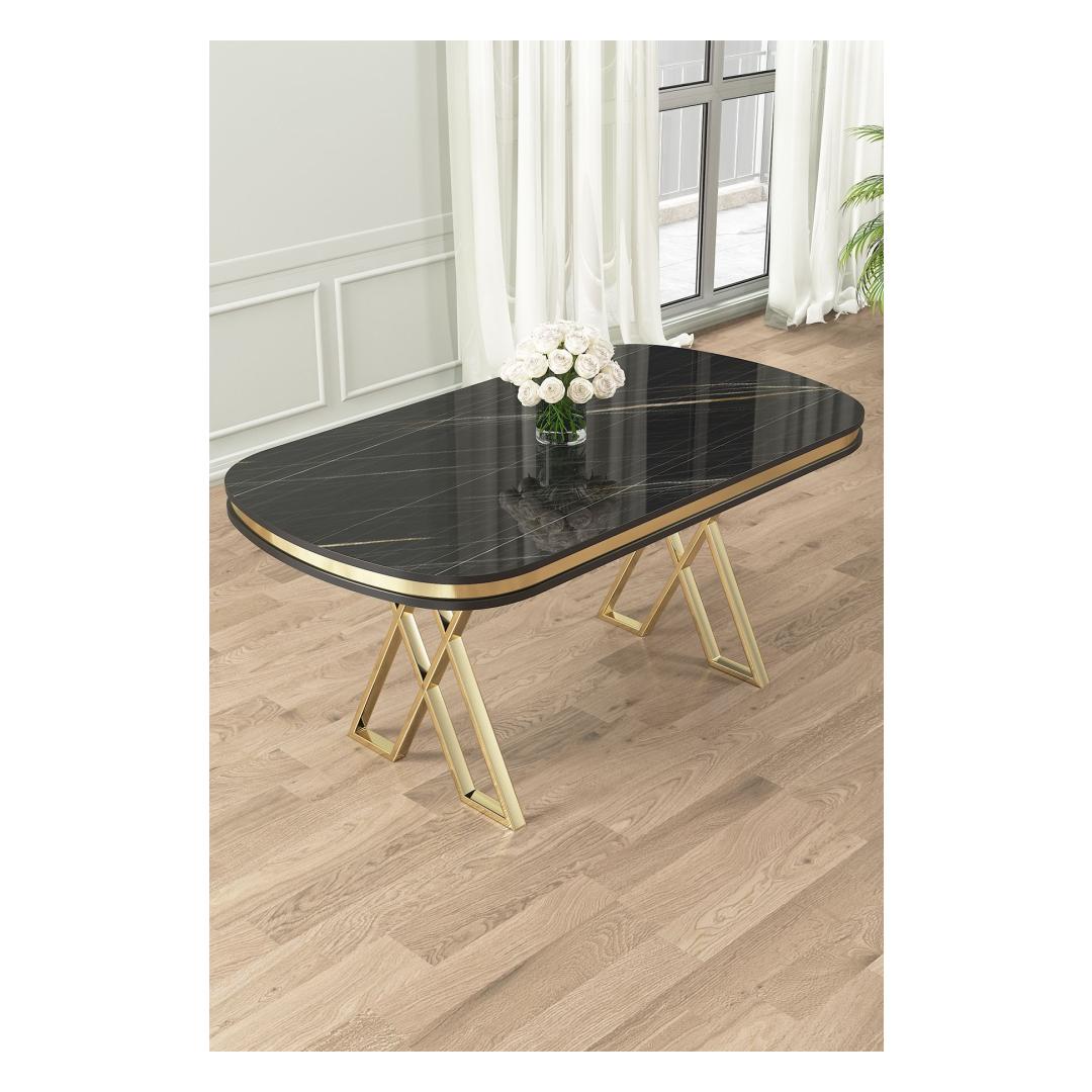 Muuda oma söögituba luksuslikuks pelgupaigaks meie hämmastava söögilaua abil. Valmistatud 100% lakitud paneelist ja stiilsetest metalljalgadest, kiirgab see laud elegantsi ja rafineeritust. Musta marmi ja kuldse värvi kombinatsioon lisab igasse ruumi luksuslikku hõngu, muutes selle ideaalseks keskpunktiks sinu kodus.
