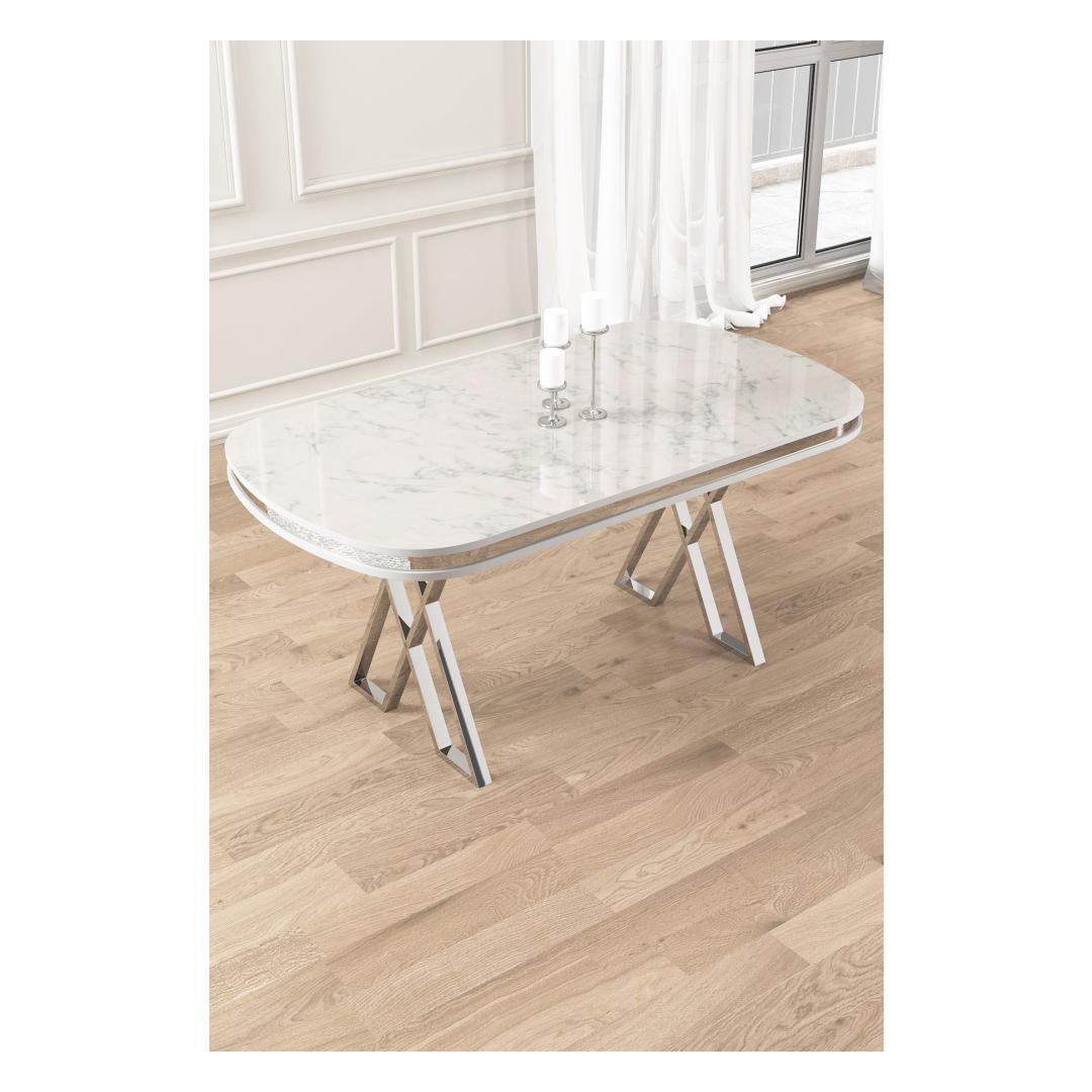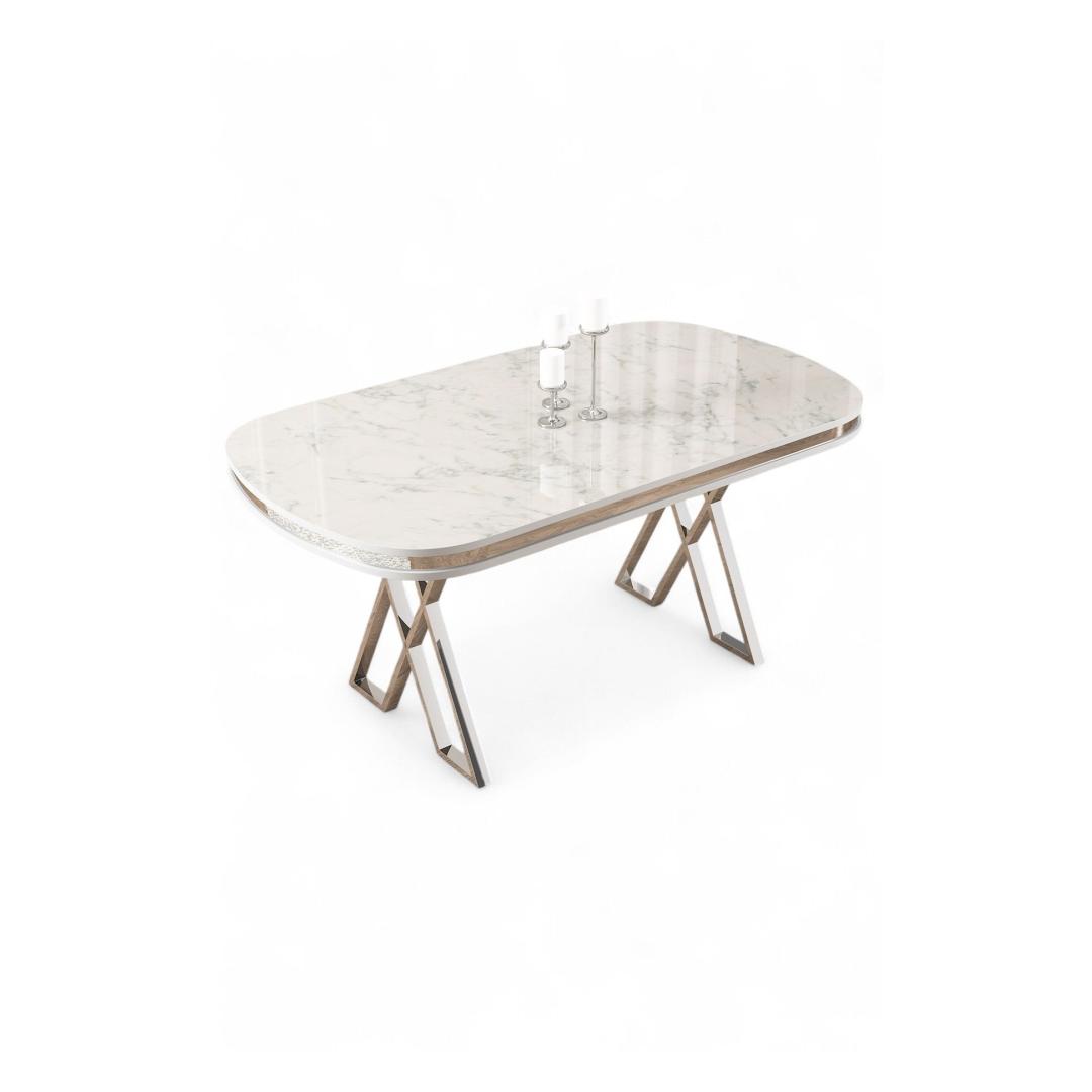 Valge marmi ja kroomi värvide kombinatsioon annab sellele söögilauale luksusliku ja modernse ilme, mis tõstab teie ruumi hetkega. 168 cm laius pakub piisavalt ruumi kõigi teie söögivajaduste jaoks, samas kui 76 cm kõrgus ja 90 cm sügavus tagavad mugava söögikogemuse teile ja teie külalistele.