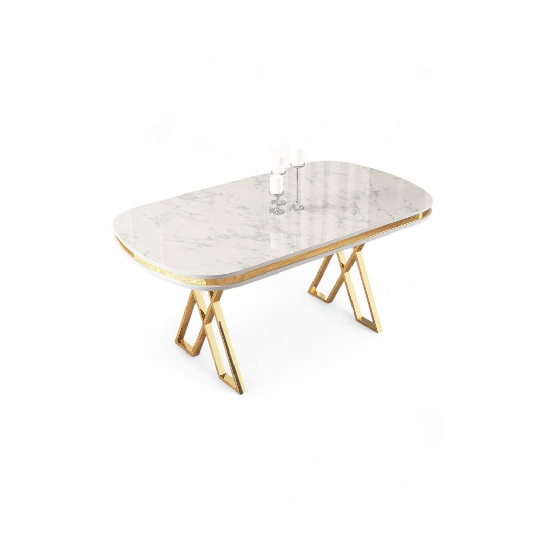 Muuda oma söögituba luksuslikuks pelgupaigaks meie hämmastava söögilaua abil. Valmistatud 100% lakitud paneelist ja stiilsetest metalljalgadest, kiirgab see laud elegantsi ja rafineeritust. Valge marmi ja kuldsete aktsentide kombinatsioon lisab igasse ruumi veidi luksust, muutes selle ideaalseks keskpunktiks sinu kodus.