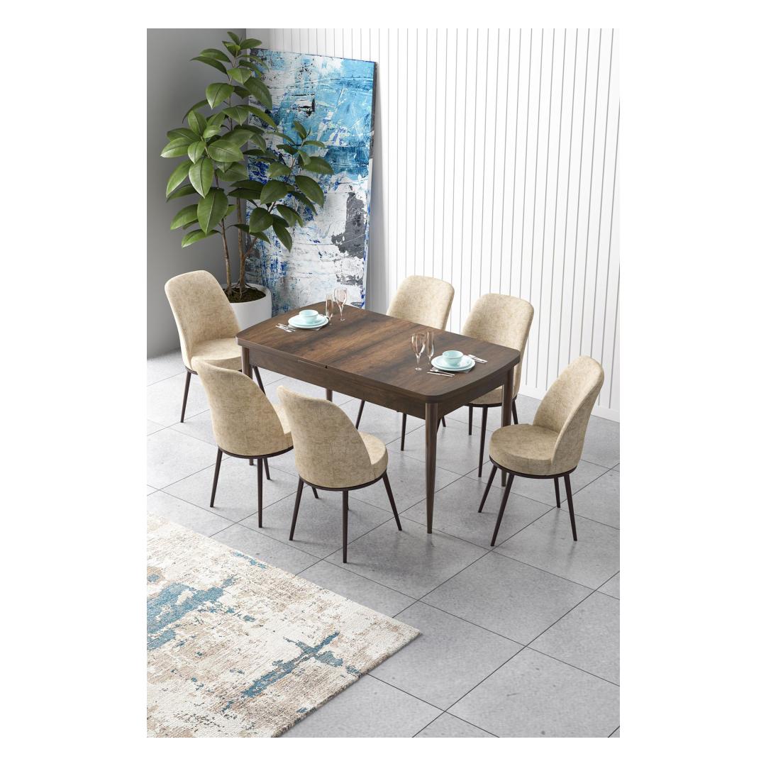Muuda oma söögituba stiilseks ja kutsuvaks ruumiks meie pikendatava söögilaua ja toolide komplektiga. See 7-osaline komplekt on ideaalne peresöömingute, pühade koosolekute või intiimsete einete nautimiseks lähedastega.